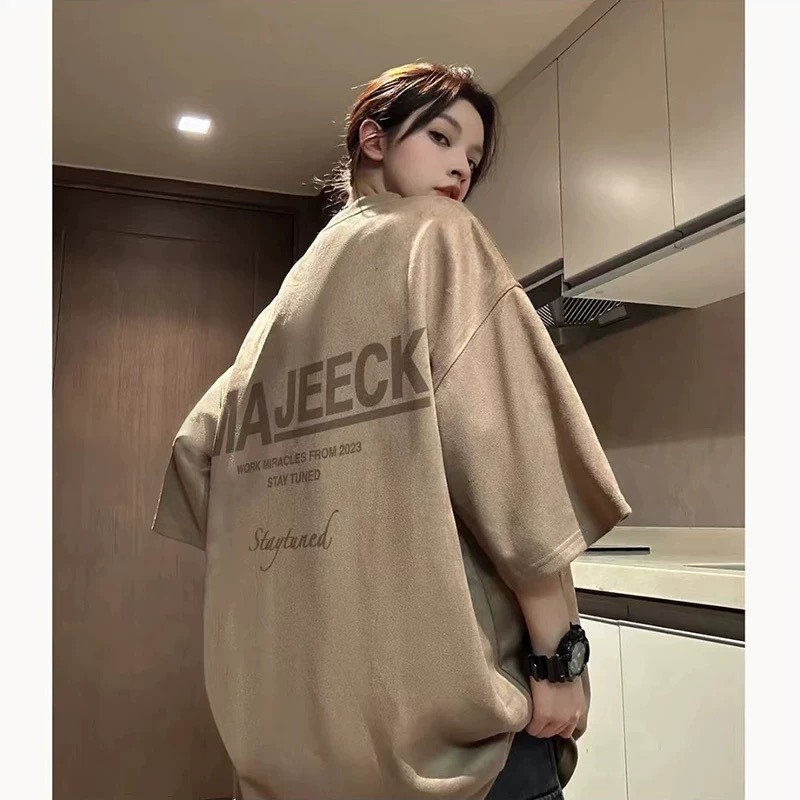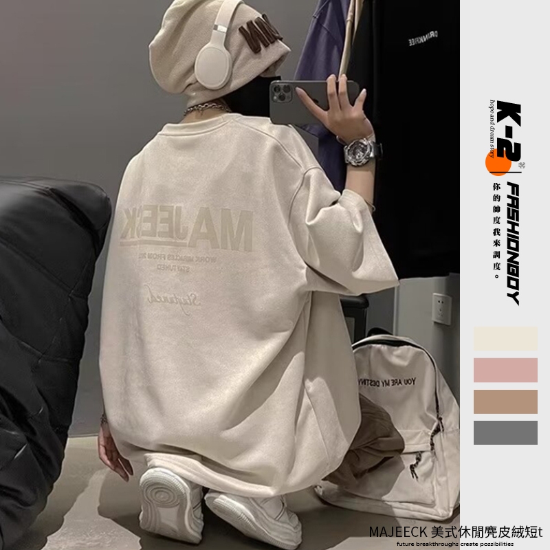 【K-2】MEJEECK 美式休閒 麂皮絨短T 短袖 上衣 麂皮絨 寬鬆 短T 復古 上衣 Y2K 麂皮【JP018】杏色,M|杏色,L|粉色,M|粉色,L|灰色,M|灰色,L|咖色,M|咖色,LT-ShirtsK-2 Fashionboy