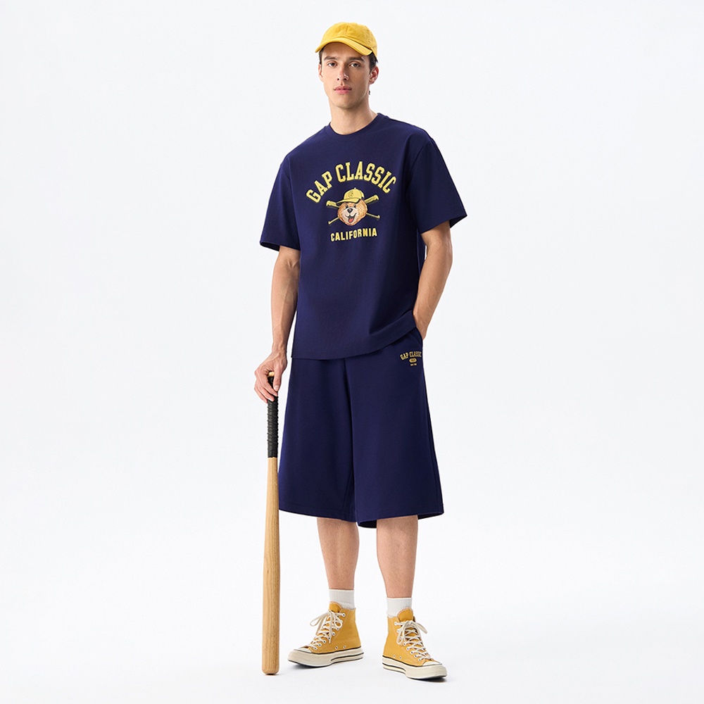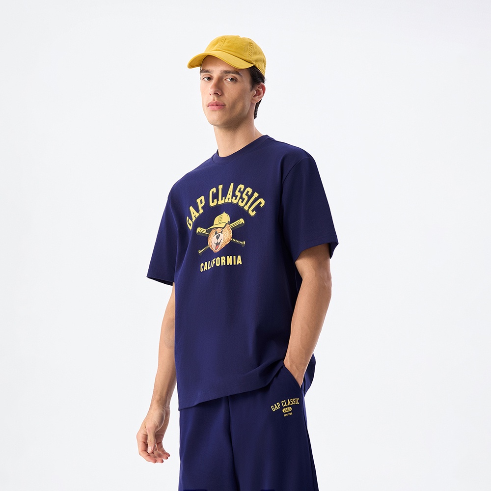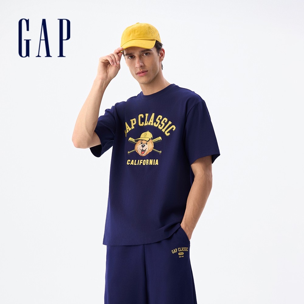Gap 男裝 Logo純棉小熊印花圓領短袖T恤-海軍藍(727654)M|L|XL|XXL|XXXL|XS|ST-ShirtsGap官方旗艦店