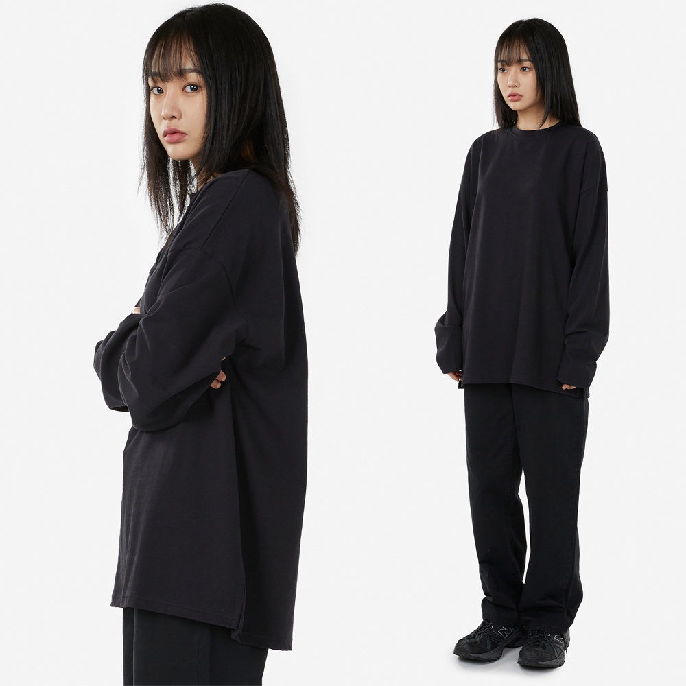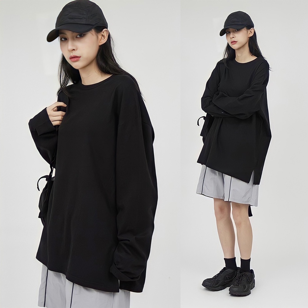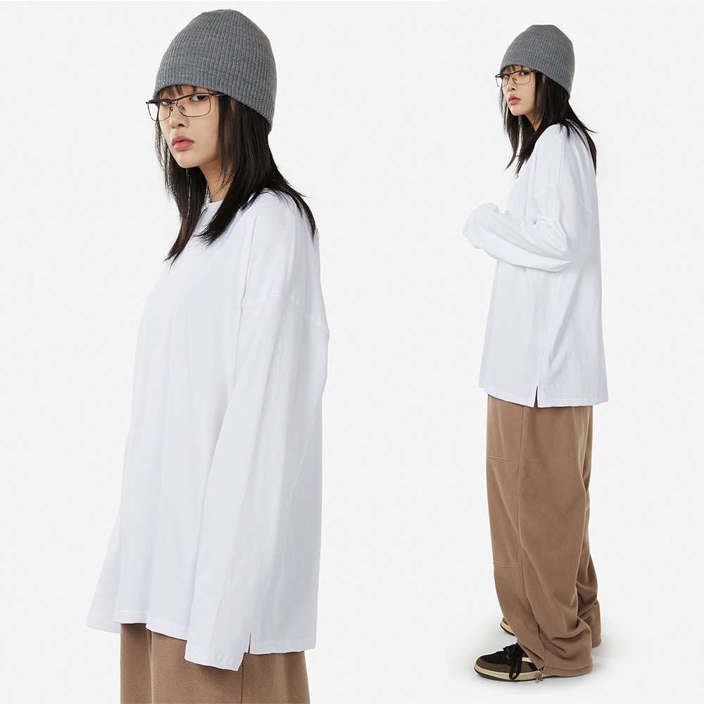 【K-2】韓國 側開岔 薄長袖 長T 開岔長T 素T 情侶 落肩 寬鬆 長袖 細絨棉 穿搭 內搭 暖色系【K508】白色|黑色|霧灰色|沙色T-ShirtsK-2 Fashionboy