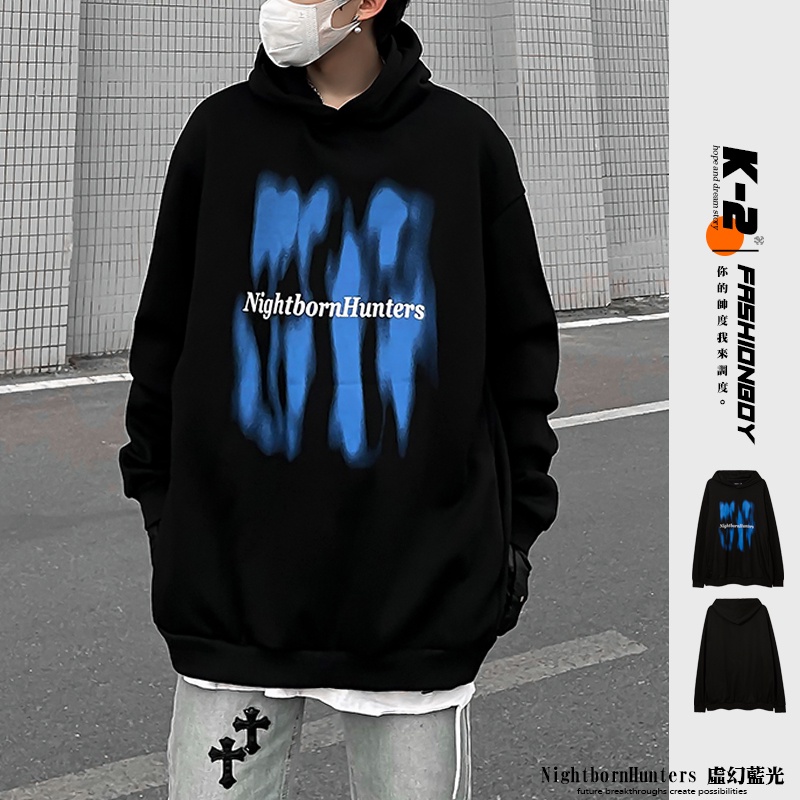 【K-2】NightbornHunters 虛幻 藍光 藍魂 噴漆感 暈染 效果 迷幻 電音 帽T 長袖【BA27】XXL|XL|M|LHoodiesK-2 Fashionboy