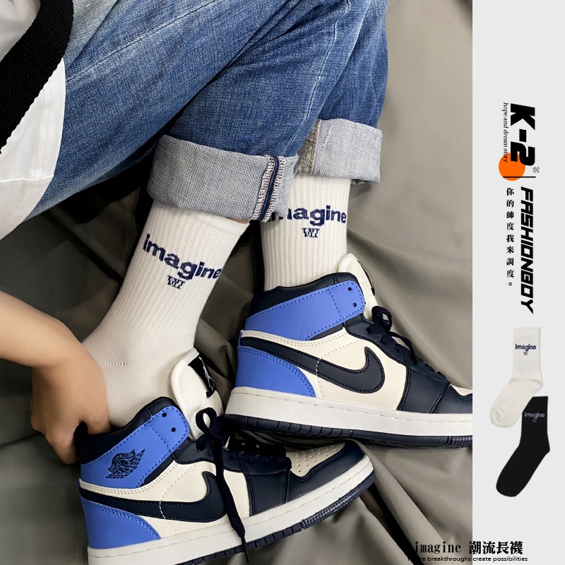 【K-2】IMAGINE 潮流長襪 OOTD 街頭穿搭 襪子 長襪 簡約 潮流 襪 情侶 春夏【KM54】白色|黑色K-2 Fashionboy