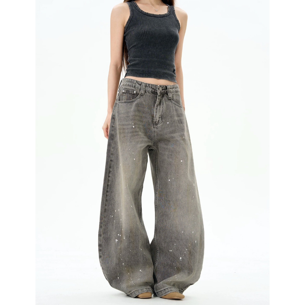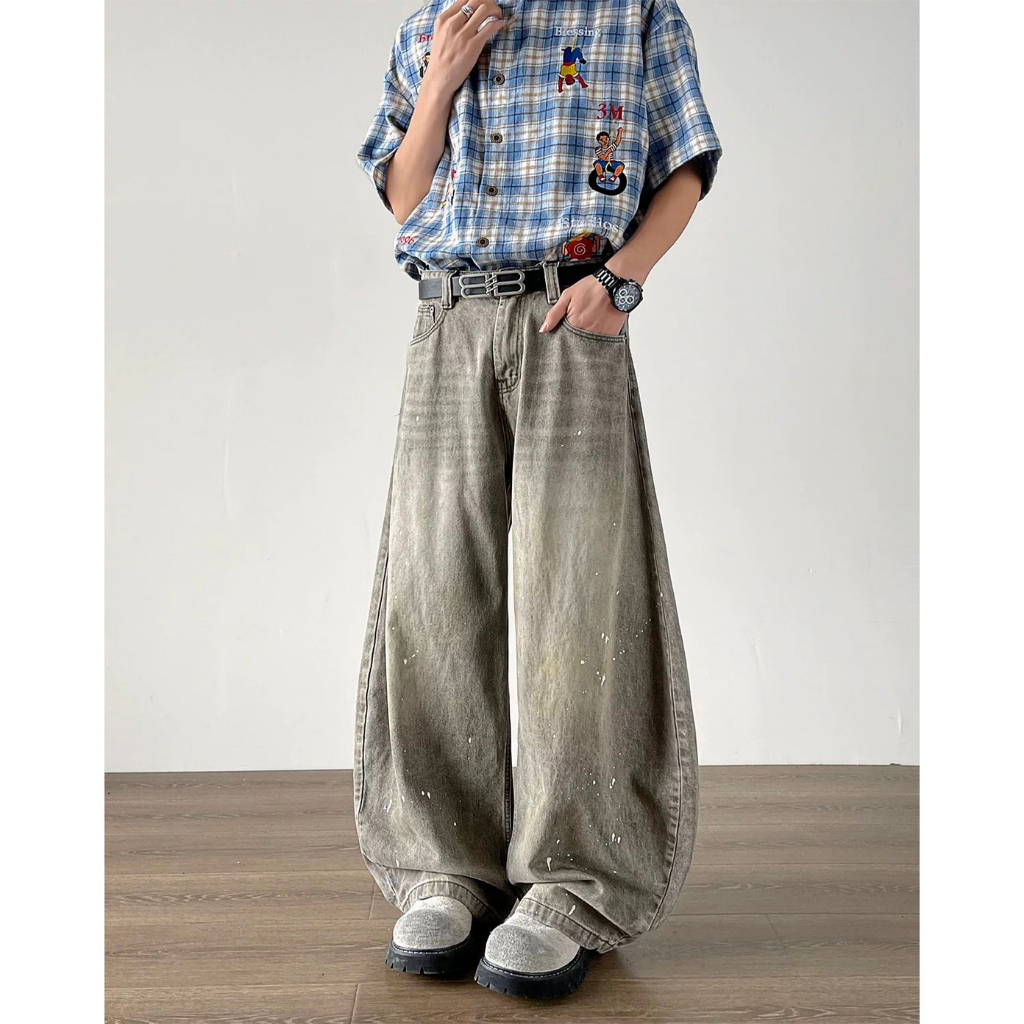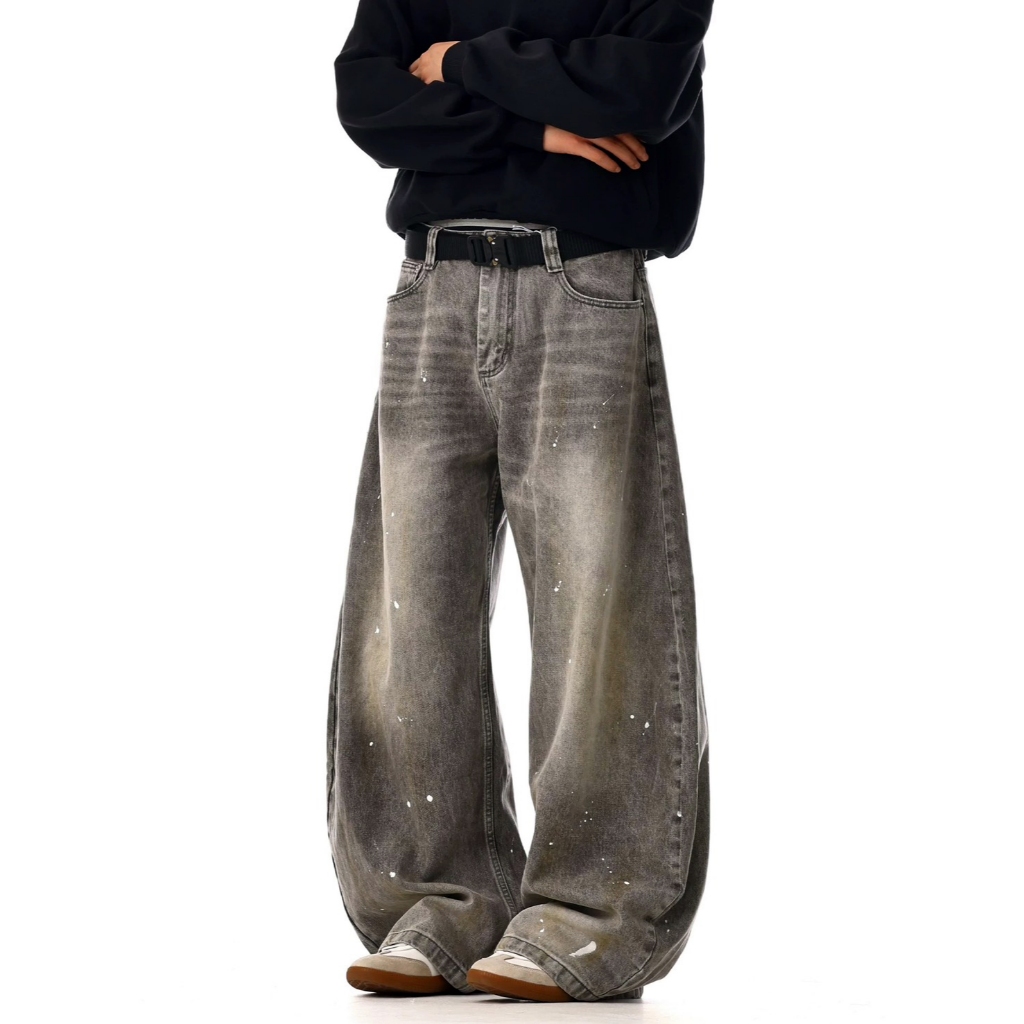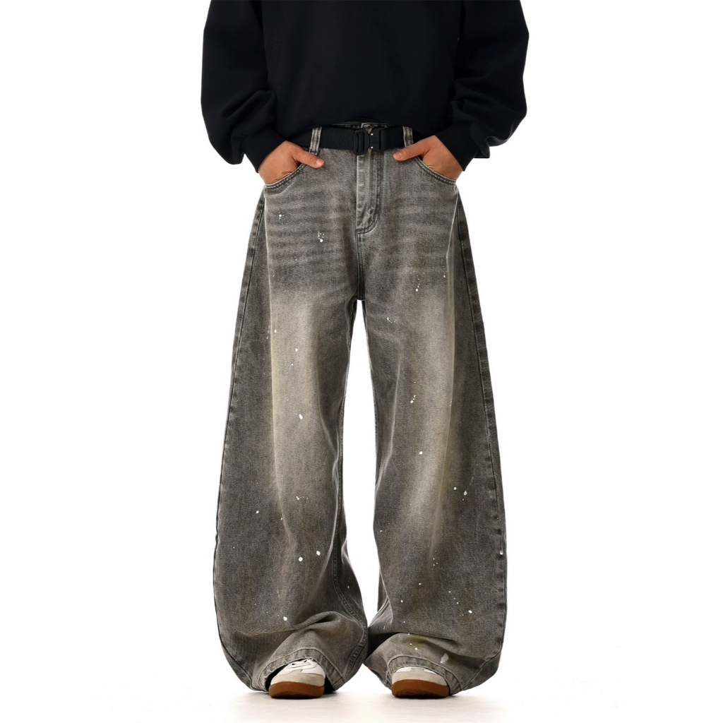 【K-2】水洗刷舊 灰色扎染 繡色暈染 漆點 廓形 寬鬆 闊腿褲 彎刀褲 牛仔褲 長褲 褲子 Y2K K【JN6030】M|L|XL|XXLK-2 Fashionboy
