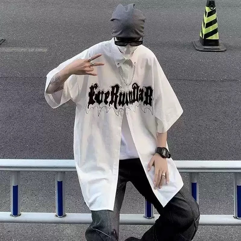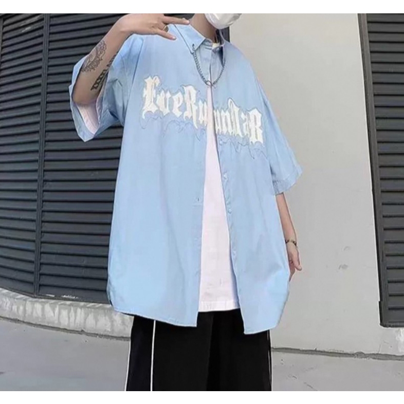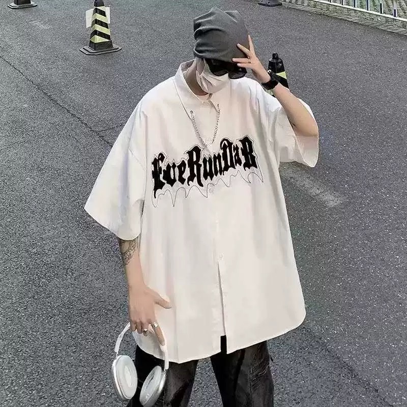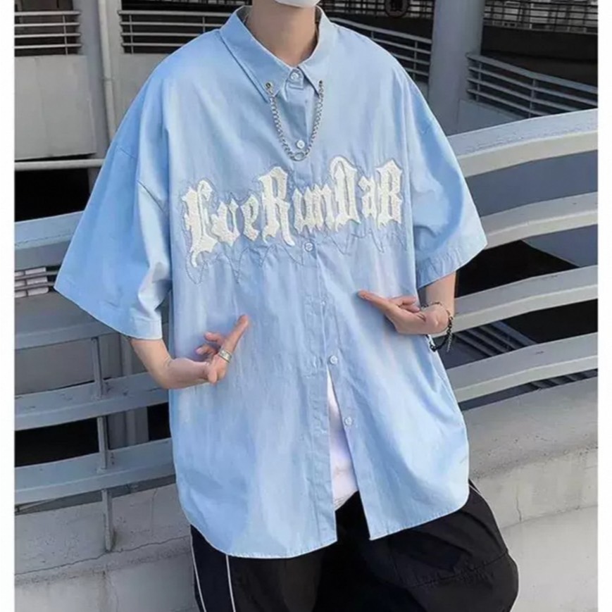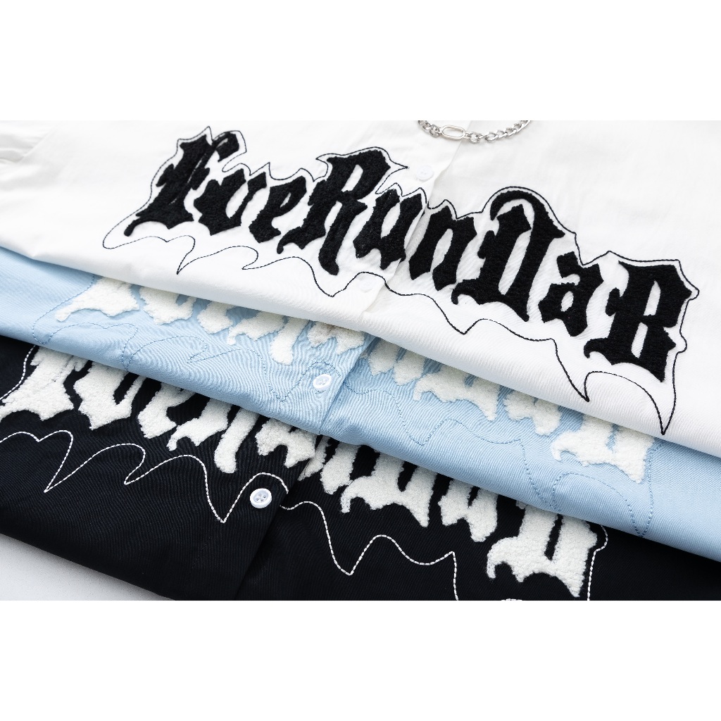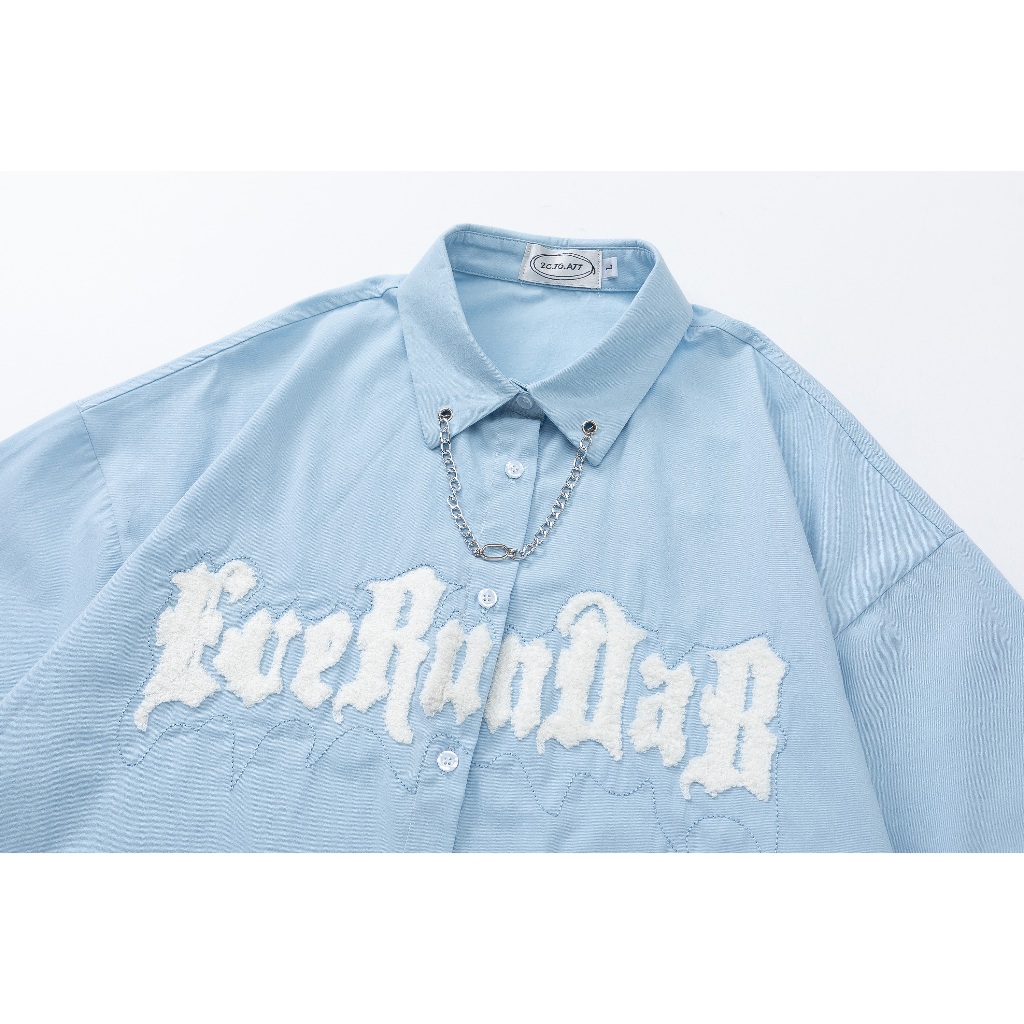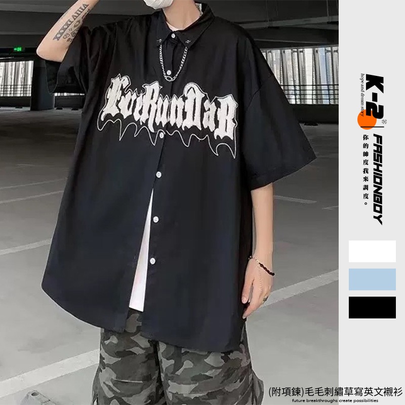【K-2】立體 毛毛刺繡 草寫英文 附項鍊 美式襯衫 短袖襯衫 街頭 潮流 街舞 寬鬆落肩 男女不拘【JJ223】白,M|白,L|白,XL|藍,M|藍,L|藍,XL|黑,M|黑,L|黑,XLShirtsK-2 Fashionboy