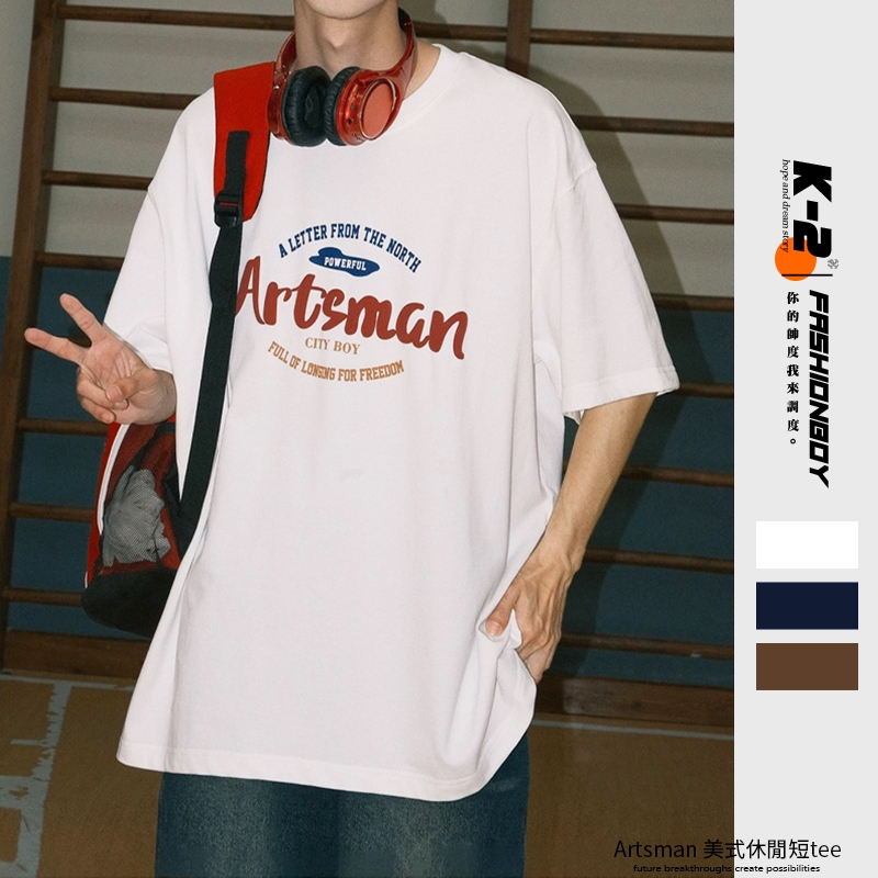 【K-2】Artsman 美式休閒 潮流短t 純棉 230g 短袖上衣 美式 復古 純棉短t 情侶 y2k【JC676】藏青色,M|藏青色,L|白色,M|白色,L|咖色,M|咖色,LT-ShirtsK-2 Fashionboy