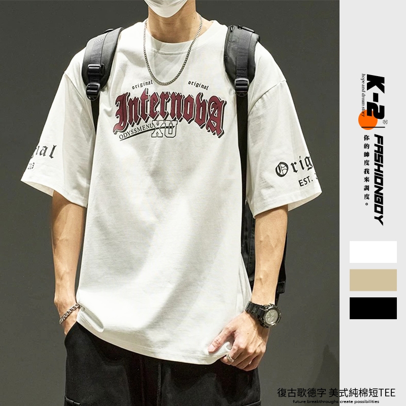 【K-2】美式復古 歌德字體 印花 XU 純棉短T 短袖 上衣 落肩 寬鬆 純棉 短T 休閒短T Y2K【JD468】白色,M|白色,L|白色,XL|卡其色,M|卡其色,L|卡其色,XL|黑色,M|黑色,L|黑色,XLT-ShirtsK-2 Fashionboy