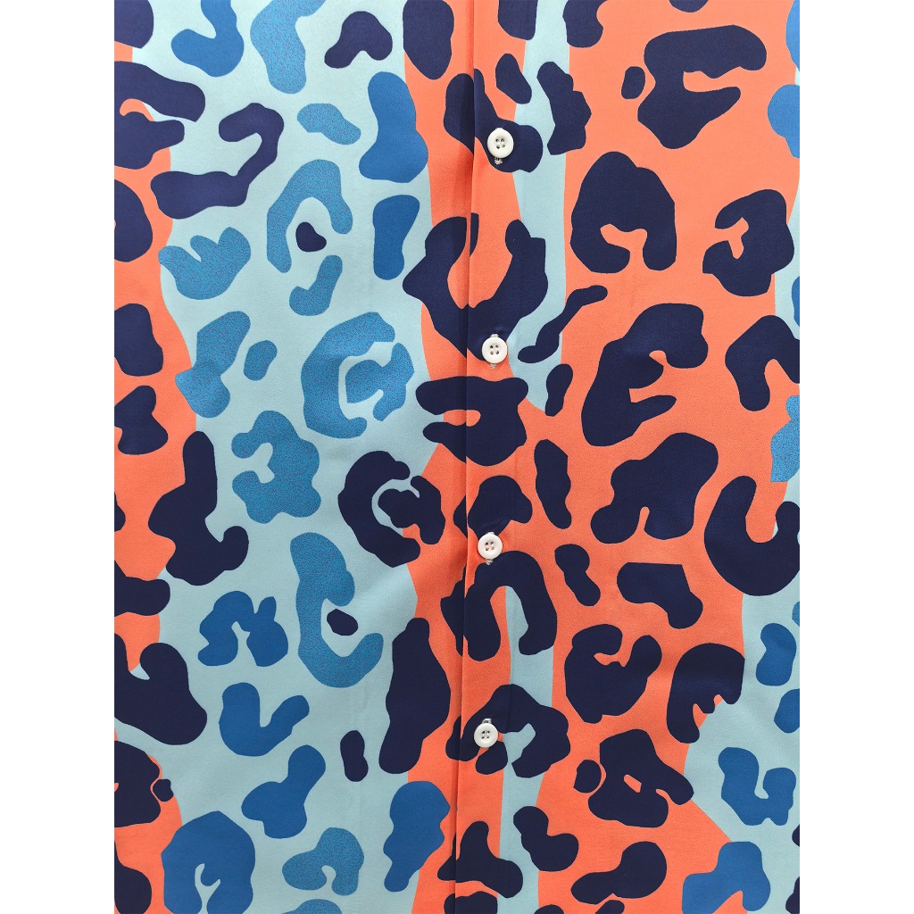 【K-2】色彩拼接 豹紋 動物紋 藍橘配色 狂野 夜店 短袖襯衫 穿搭 個性 小眾 繽紛 焦點 寬鬆【JXK108】