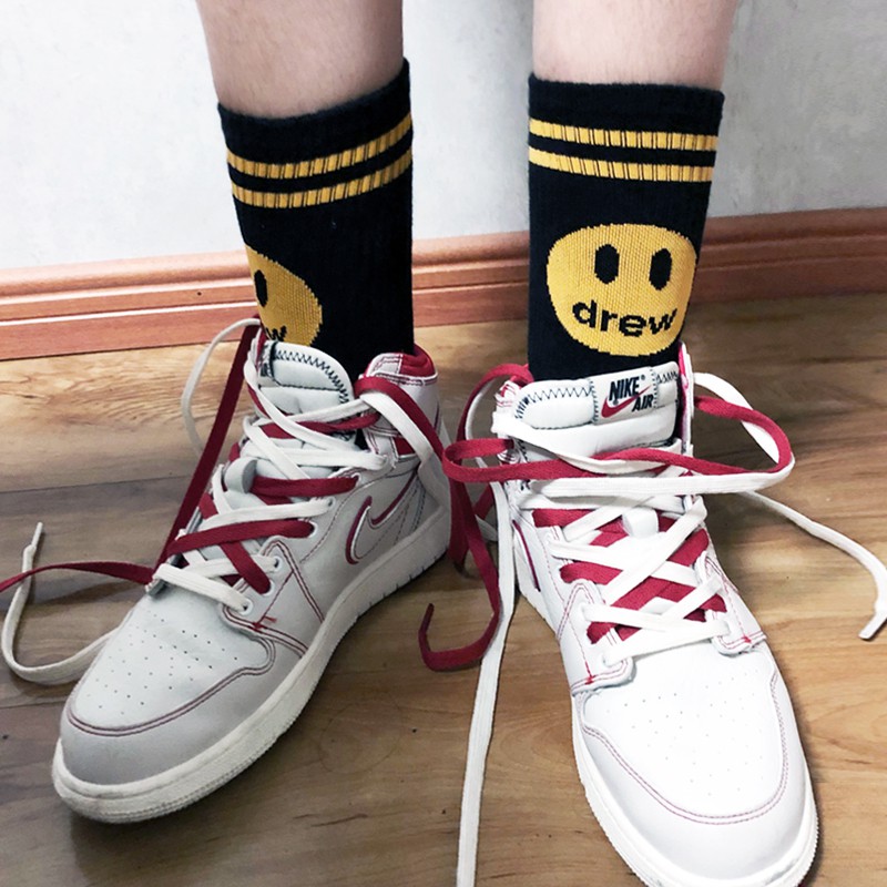 【K-2】DREW 條紋 微笑襪 長襪 中筒襪 搭配 TRAP 潮流 襪子 男女不拘 小賈斯汀 小賈襪【KJB1】白色|黑色K-2 Fashionboy