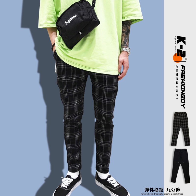 【K-2】韓國硬版 格紋 九分褲 硬挺 彈性布料 素色 休閒長褲 窄管 格子褲 潮流必備 買到賺到 K2【KD06】黑色S號|黑色M號|黑色L號|黑色XL號|黑格紋S號|黑格紋M號|黑格紋L號|黑格紋XL號PantsK-2 Fashionboy