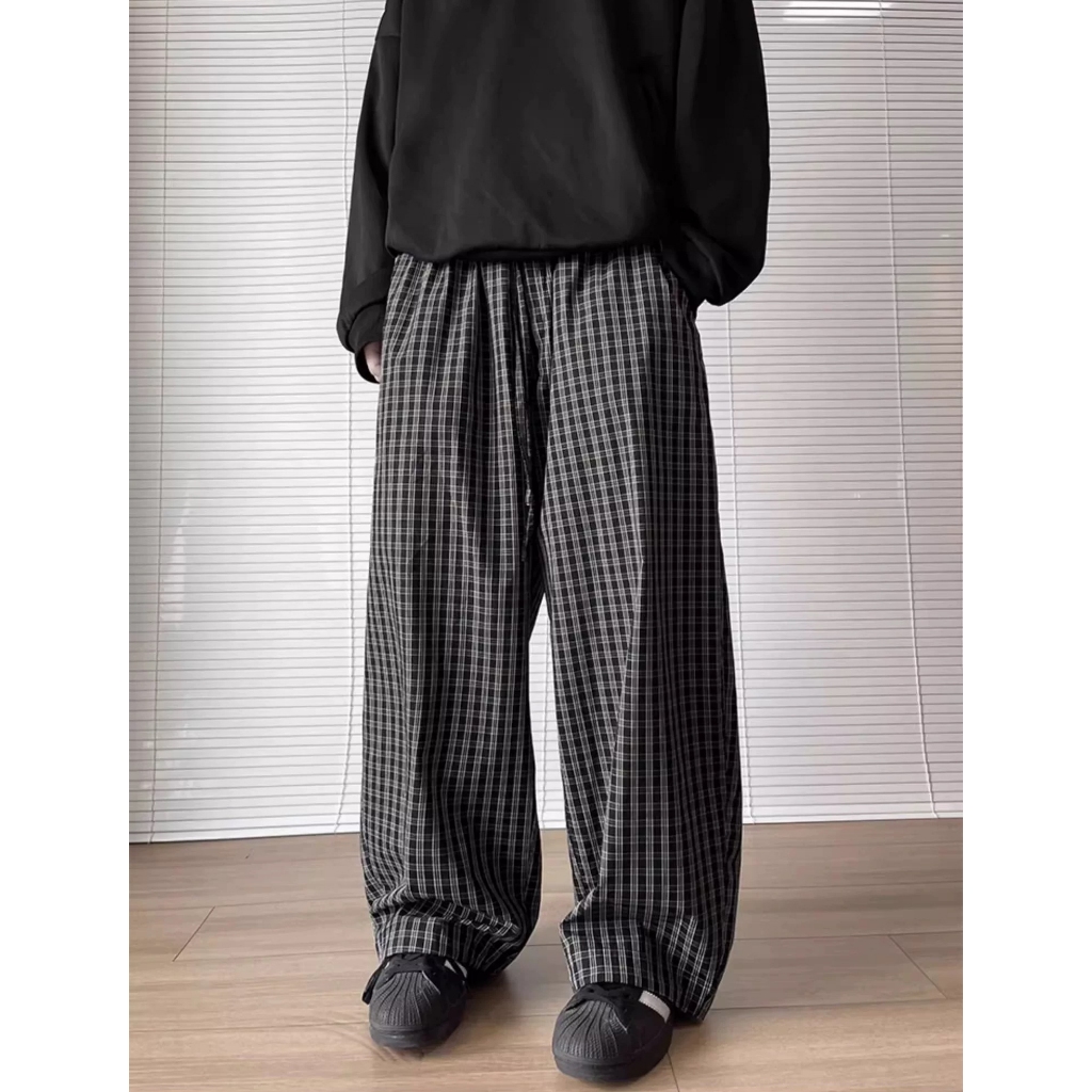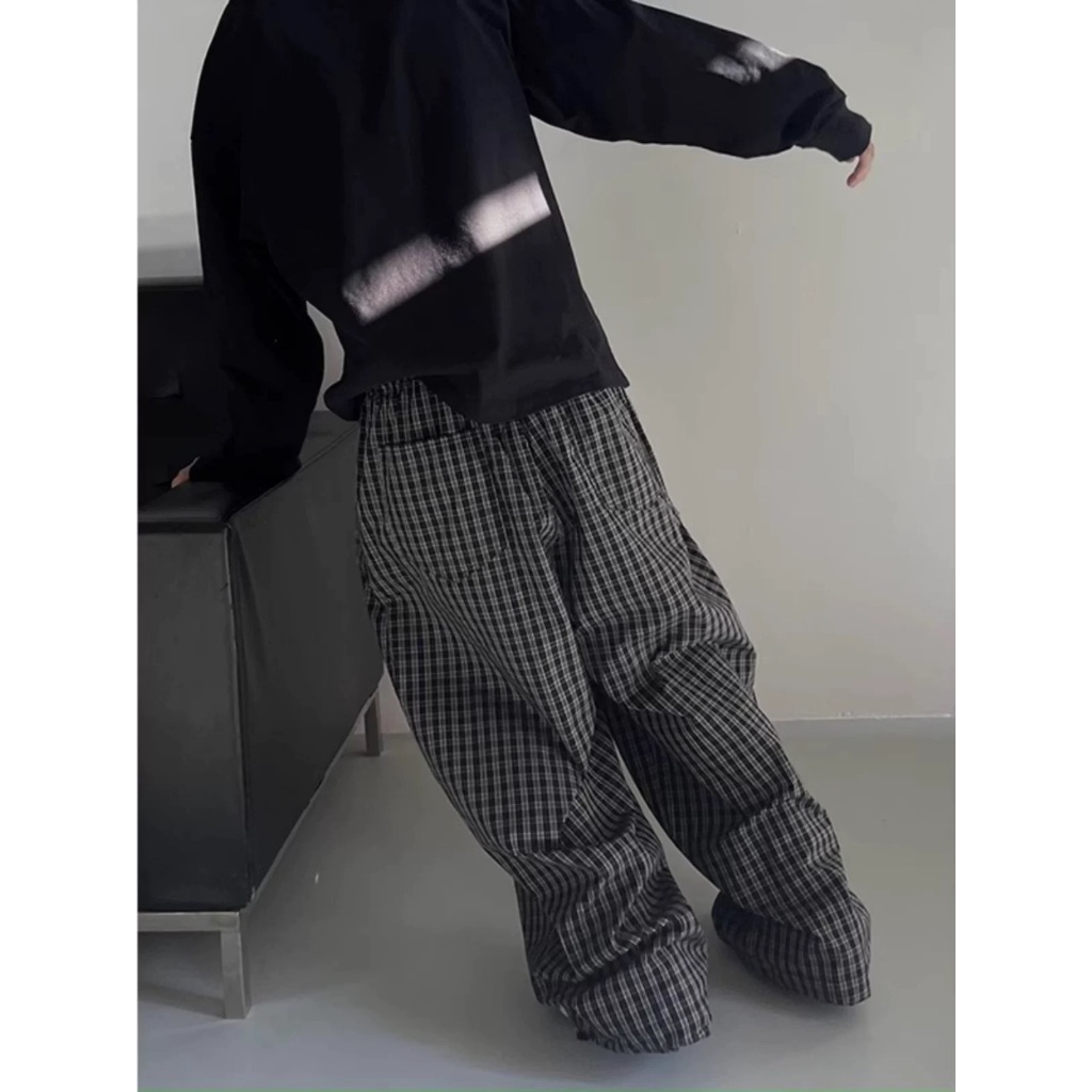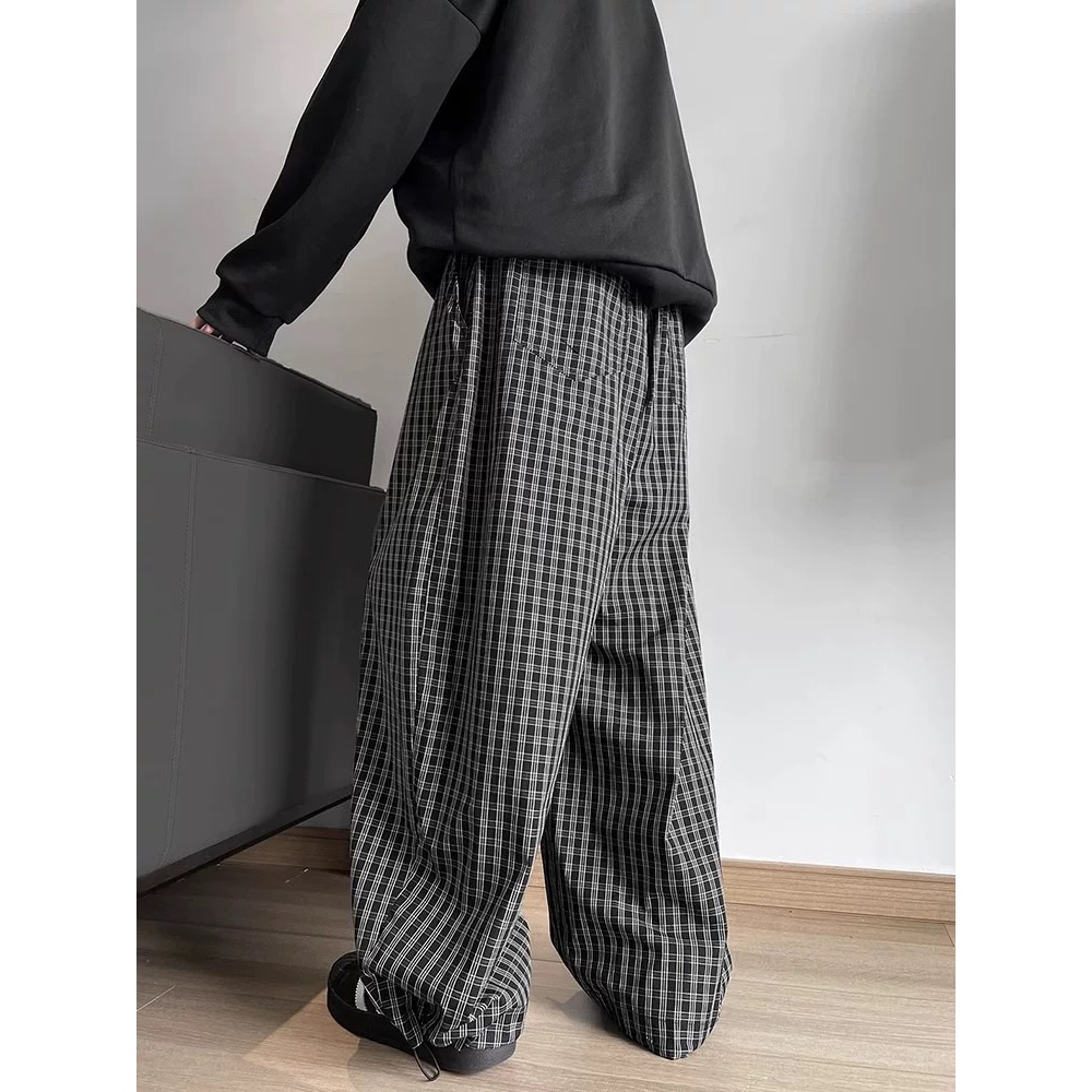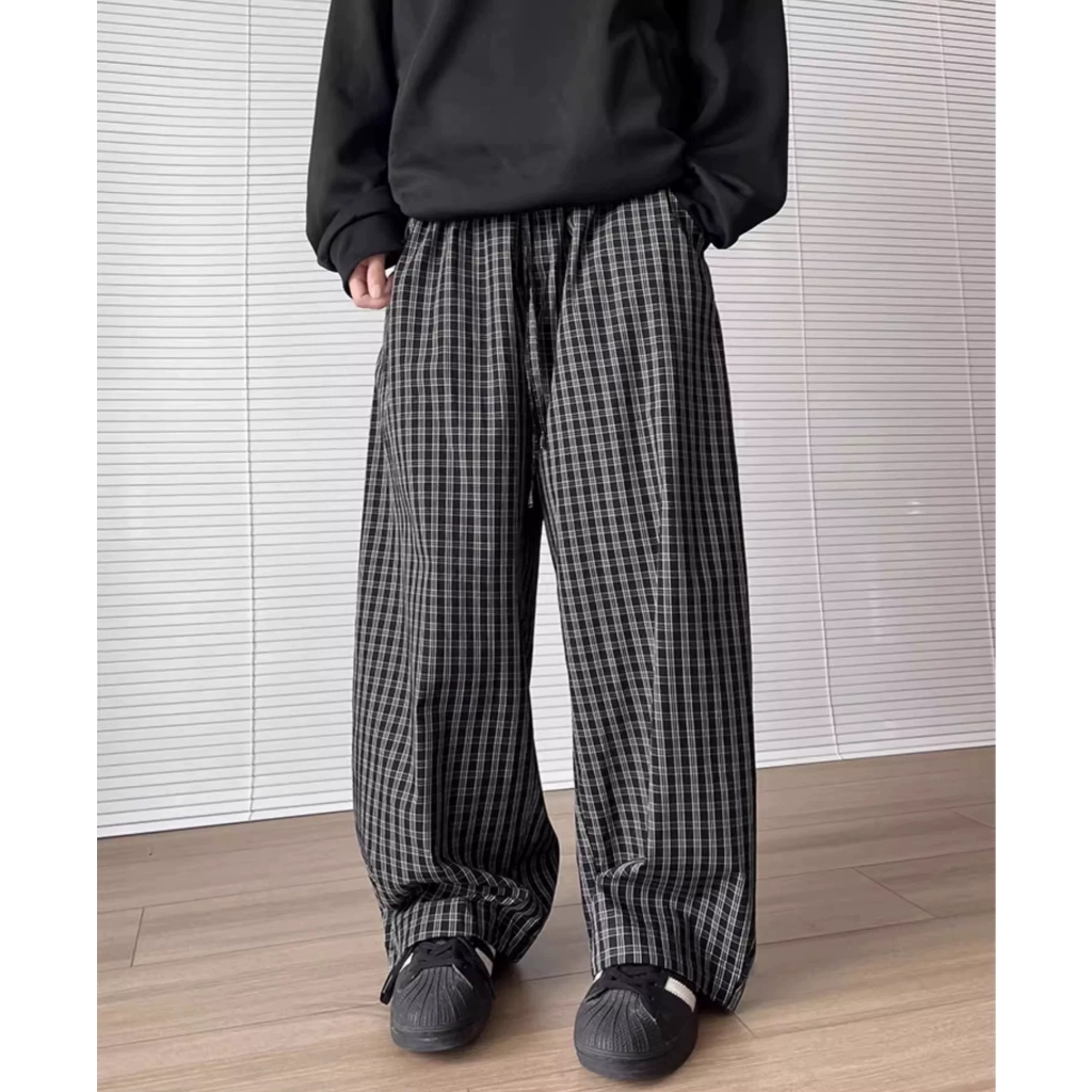 【K-2】日系復古 小格子 闊腿寬褲 日系長褲 格子褲 寬褲 格紋褲 長褲 復古長褲 Y2K褲子 闊腿褲【JAK56】M|L|XL|XXLPantsK-2 Fashionboy