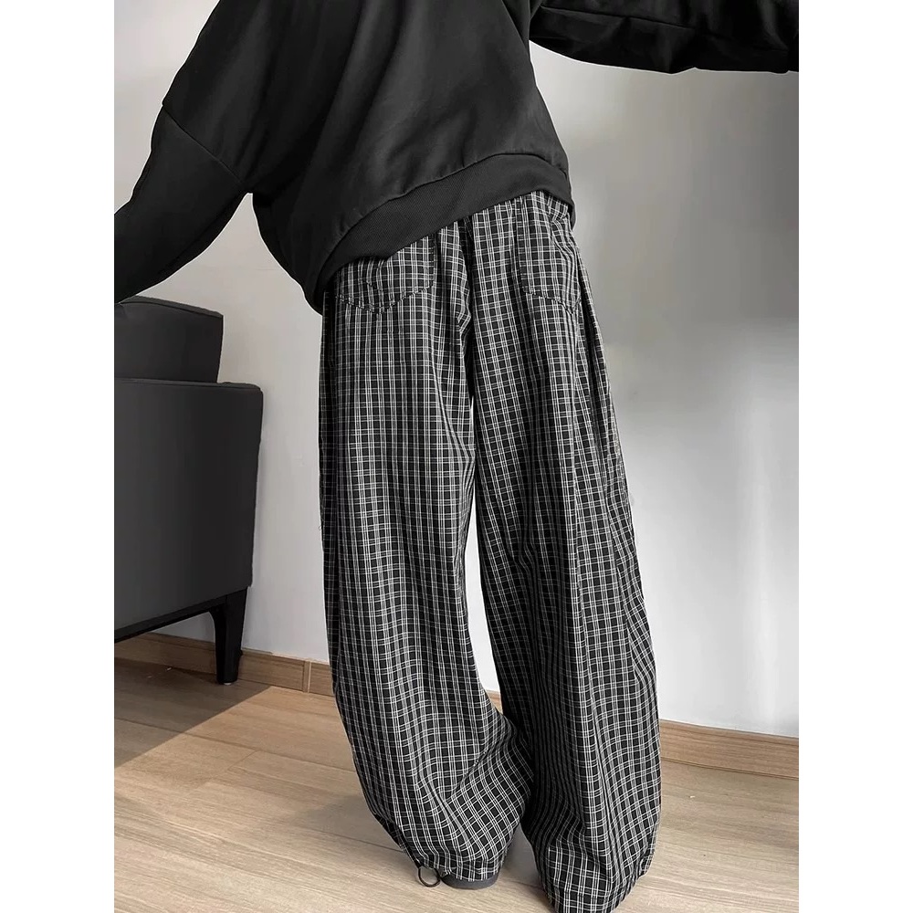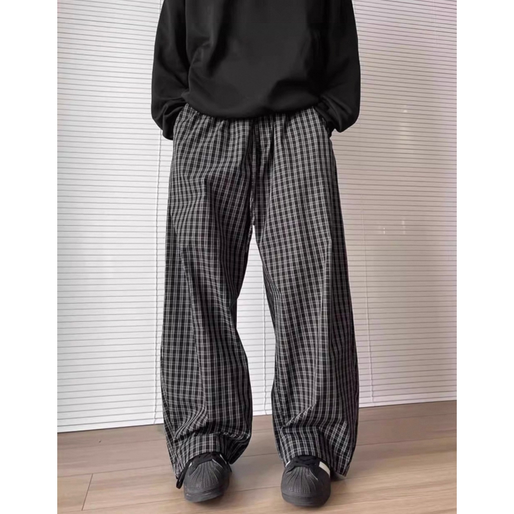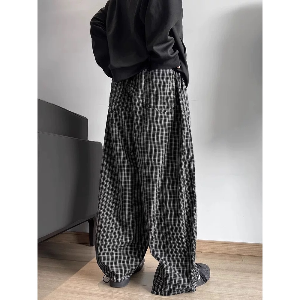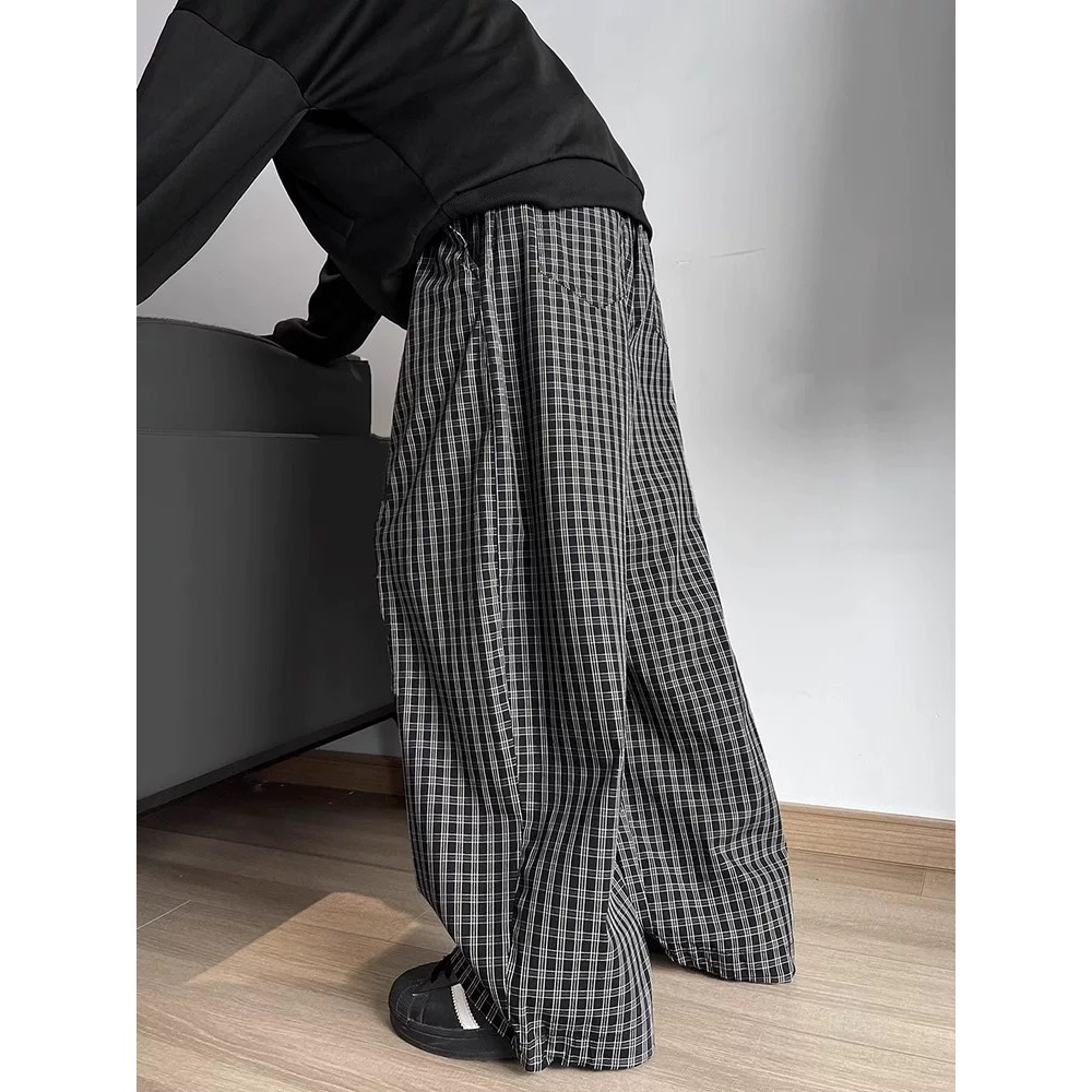 【K-2】日系復古 小格子 闊腿寬褲 日系長褲 格子褲 寬褲 格紋褲 長褲 復古長褲 Y2K褲子 闊腿褲【JAK56】M|L|XL|XXLPantsK-2 Fashionboy