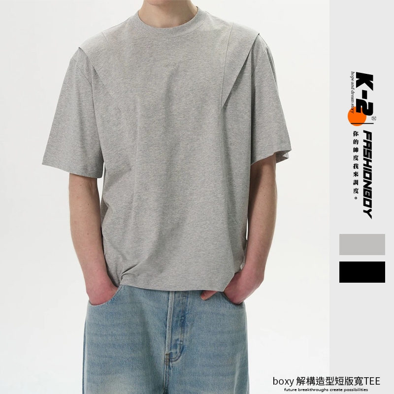【K-2】cleanfit boxy 活頁剪裁 帥哥必穿 短版寬T 解構短T 刺繡 短版短袖 寬短版 K【JT7503】灰色,M|灰色,L|灰色,XL|灰色,XXL|黑色,M|黑色,L|黑色,XL|黑色,XXLT-ShirtsK-2 Fashionboy