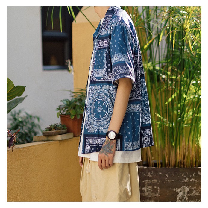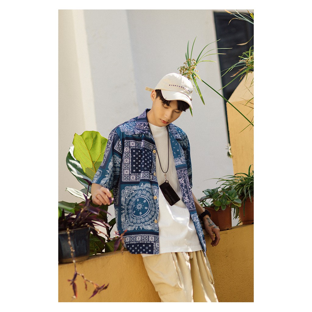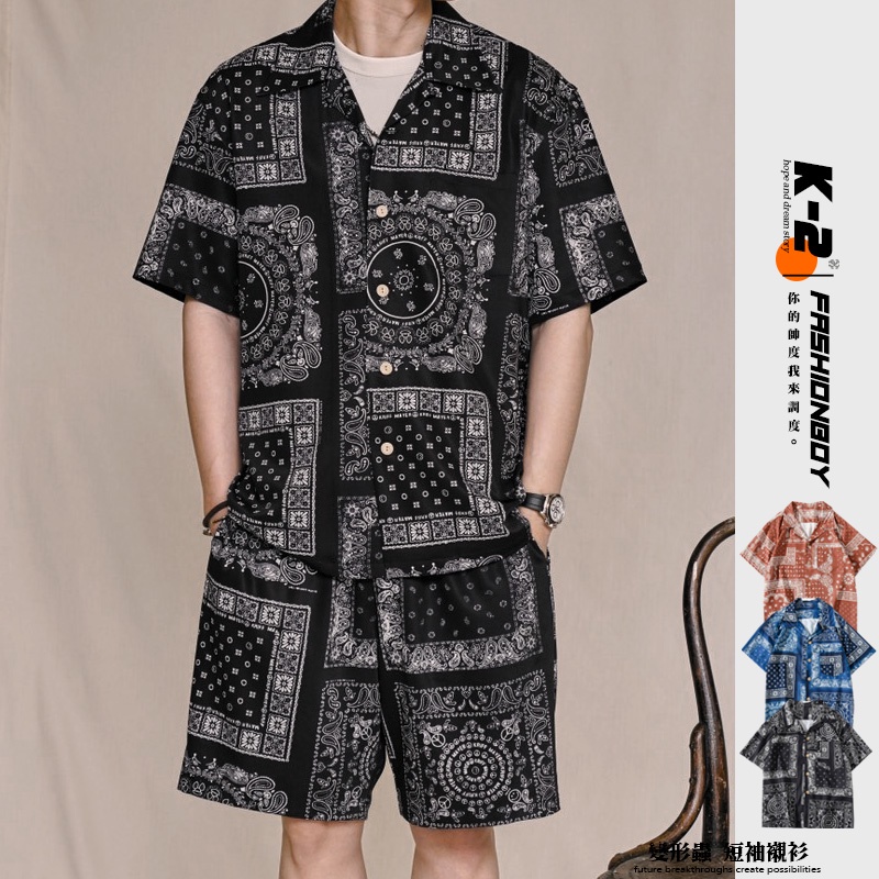 【K-2】古巴 腰果花 變形蟲 圖騰 腰花 滿版 潮流襯衫 短袖襯衫 街頭 TARP 陷阱妹 襯衫【B8008】黑色,M|黑色,L|黑色,XL|黑色,XXL|藍色,M|藍色,L|藍色,XL|藍色,XXLShirtsK-2 Fashionboy