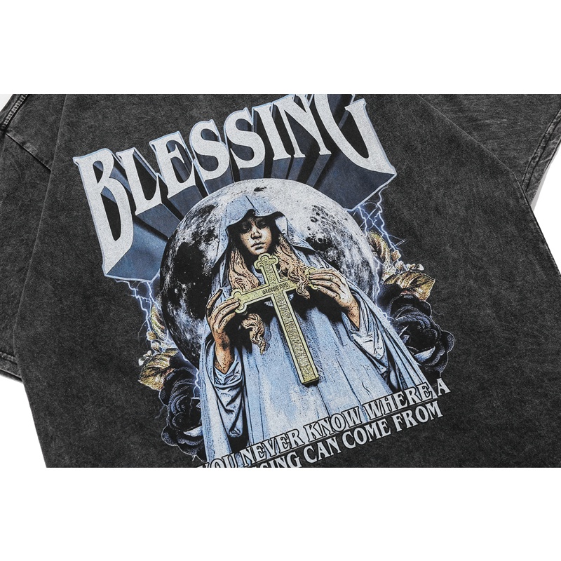 【K-2】BLESSING 祈禱 十字架 女孩禱告 地球 迷幻感 水洗短袖 五分袖 水洗短T 個性穿搭【B5014】M|L|XL|XXLT-ShirtsK-2 Fashionboy