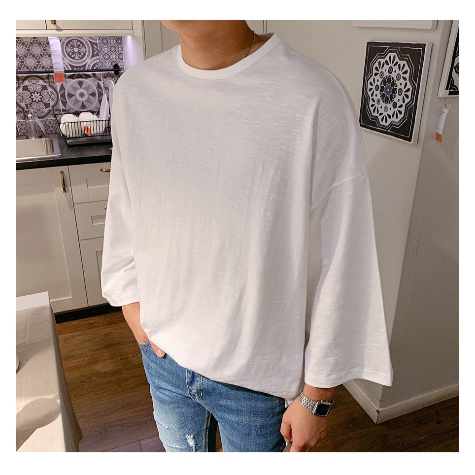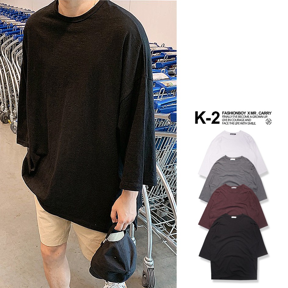 【K-2】竹節棉 九分袖 OVERSIZE 寬鬆 素T 大尺碼 落肩 開岔 上衣 男女不拘 短T【GG9】白色,M|白色,L|黑色,M|黑色,L|深灰色,M|深灰色,LT-ShirtsK-2 Fashionboy