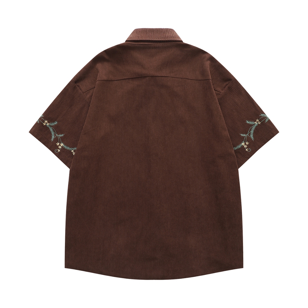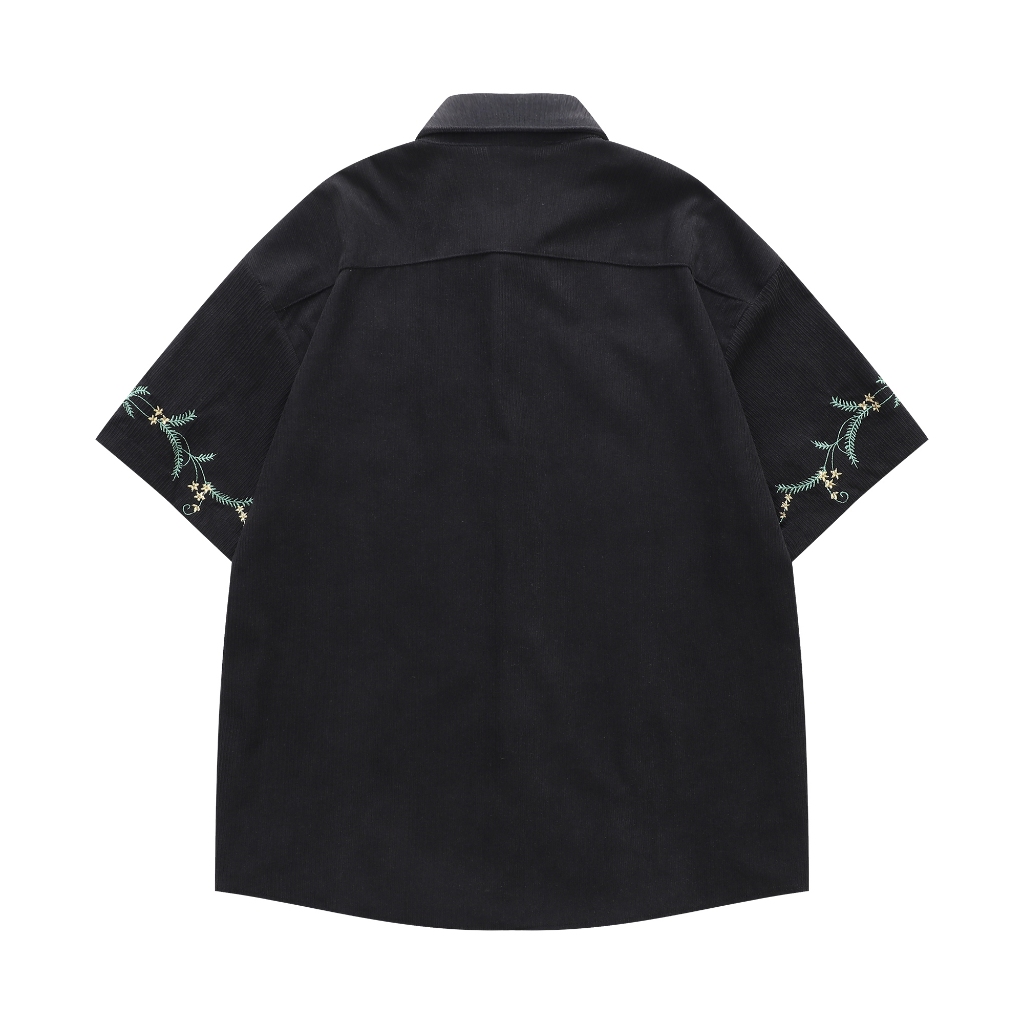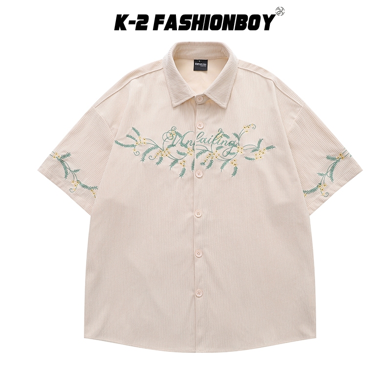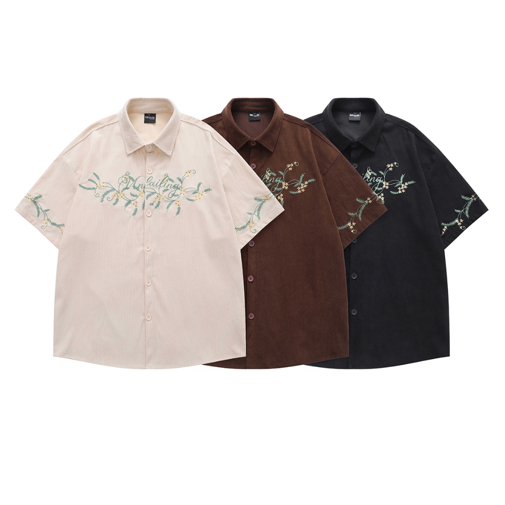 【K-2】日系復古 雕花刺繡 花草 繡花 燈芯絨襯衫 短袖襯衫 燈芯絨 襯衫 日系 刺繡襯衫 Y2K K2【J5517】黑色,L|黑色,XL|杏色,M|杏色,L|杏色,XL|咖色,M|咖色,L|咖色,XL|黑色,MShirtsK-2 Fashionboy