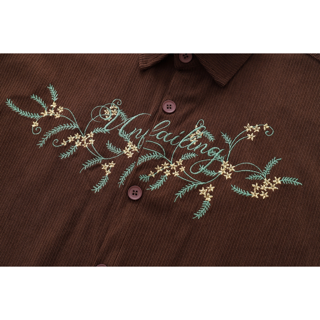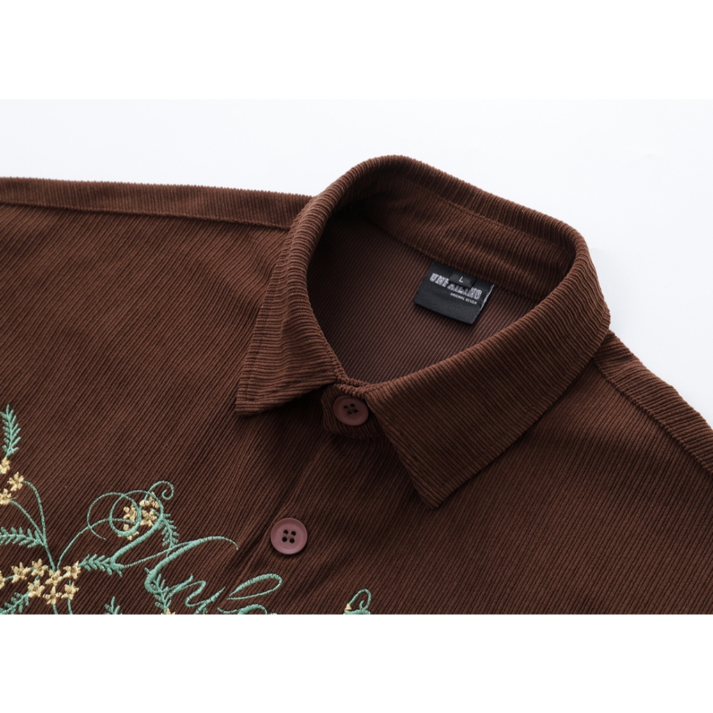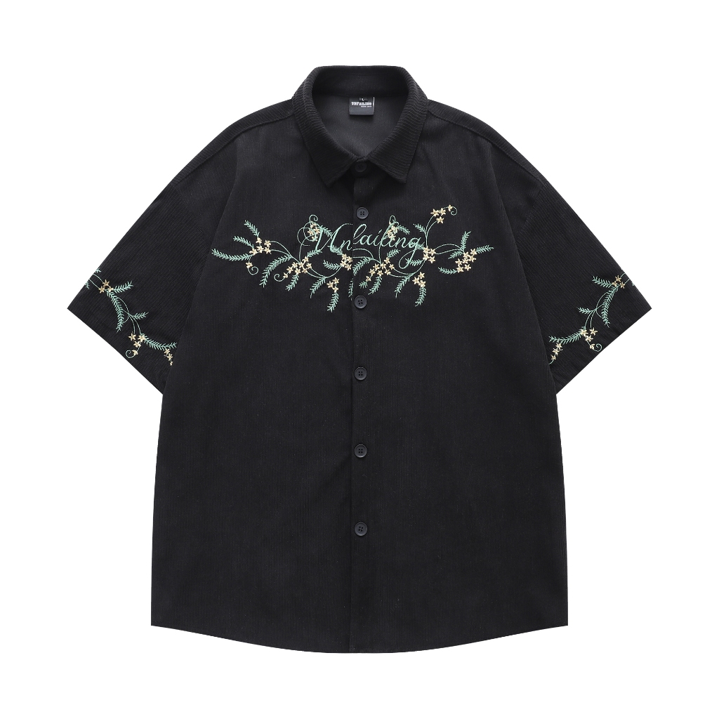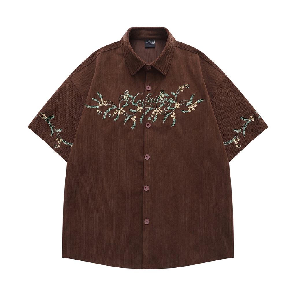 【K-2】日系復古 雕花刺繡 花草 繡花 燈芯絨襯衫 短袖襯衫 燈芯絨 襯衫 日系 刺繡襯衫 Y2K K2【J5517】黑色,L|黑色,XL|杏色,M|杏色,L|杏色,XL|咖色,M|咖色,L|咖色,XL|黑色,MShirtsK-2 Fashionboy
