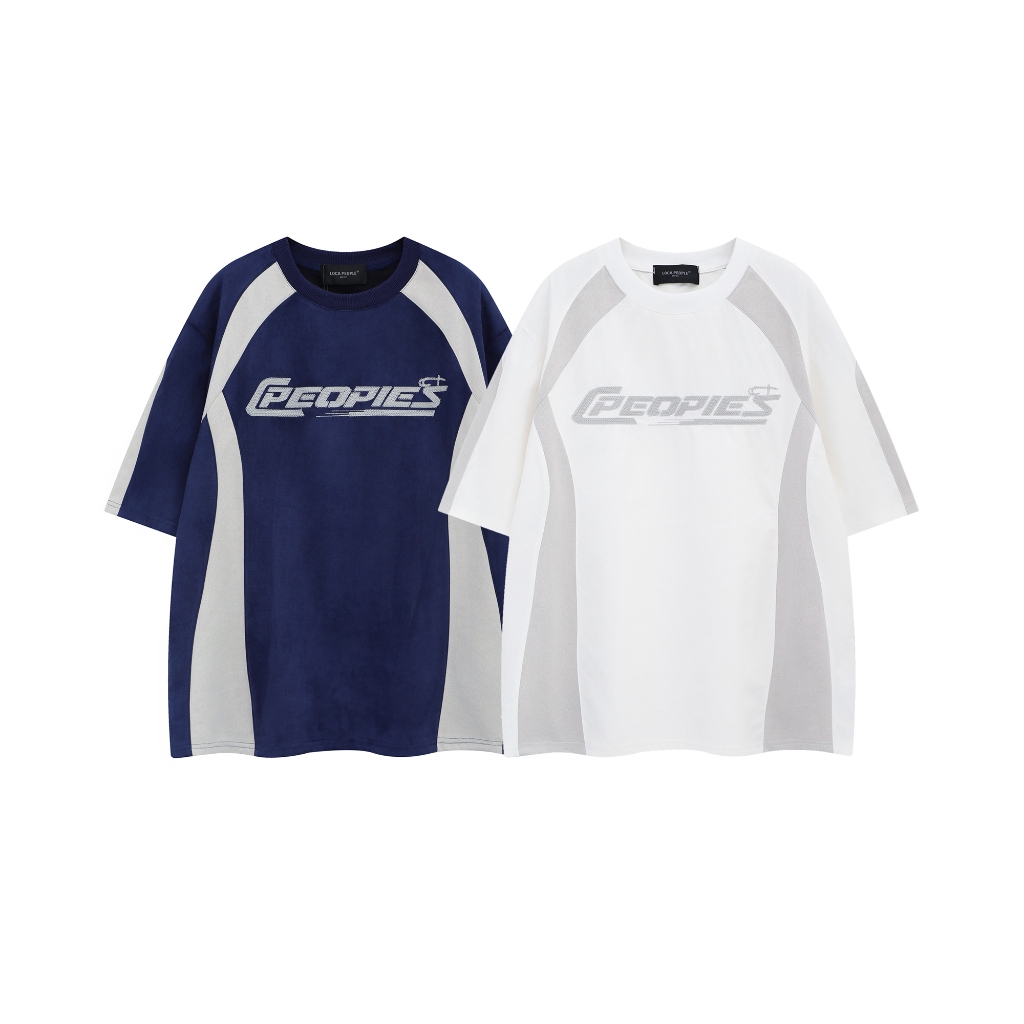 【K-2】PEOPLES 麂皮絨 短袖上衣 撞色 賽車風 穿搭 個性 搭配 男女不拘 K2 短T 帥氣【JT4140】深藍,M|深藍,L|深藍,XL|白,M|白,L|白,XLT-ShirtsK-2 Fashionboy