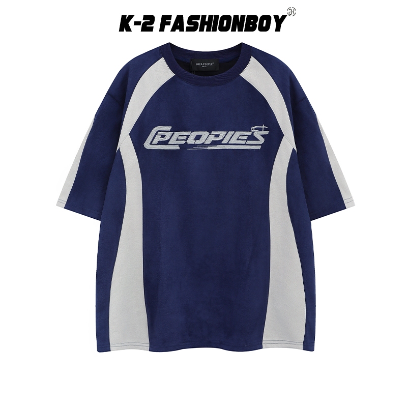 【K-2】PEOPLES 麂皮絨 短袖上衣 撞色 賽車風 穿搭 個性 搭配 男女不拘 K2 短T 帥氣【JT4140】