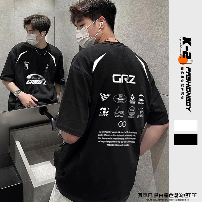 【K-2】賽車風 黑白撞色 潮流 短袖上衣 寬鬆 情侶 街頭 中性 短T 男女不拘 VIBE【J6966】黑,M|黑,L|黑,XL|黑,XXL|白,M|白,L|白,XL|白,XXLT-ShirtsK-2 Fashionboy