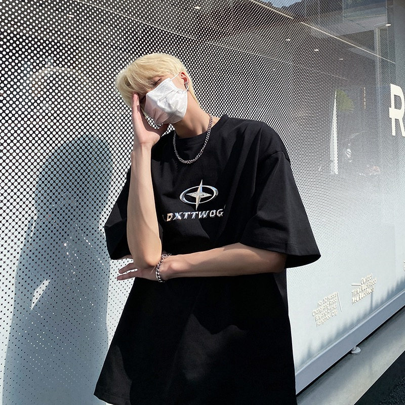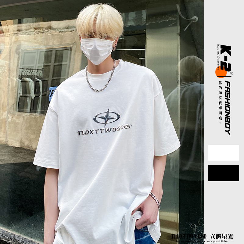 【K-2】立體星光 簡約短袖上衣 休閒短T 英文 字體 字母 落肩寬鬆 男女不拘 基本百搭款【A6869】黑色,XXL|白色,M|白色,L|白色,XL|白色,XXL|黑色,M|黑色,L|黑色,XLT-ShirtsK-2 Fashionboy