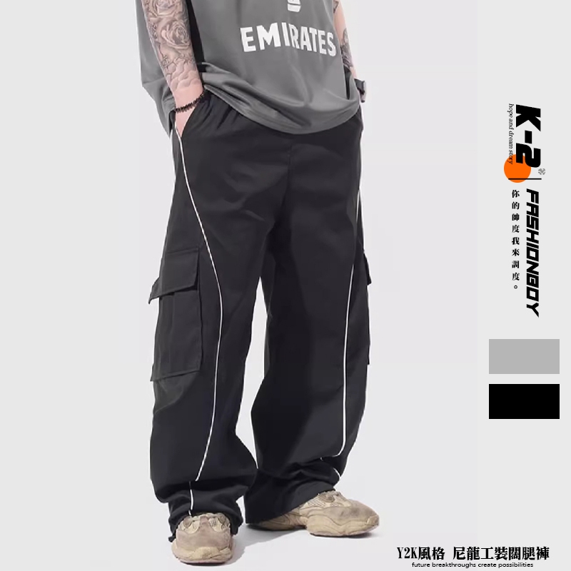 【K-2】Y2K 尼龍工裝褲 闊腿褲 寬褲 工作褲 衝鋒長褲 束口褲 風褲 速乾 潮流穿搭 長褲 褲子K2【K2C70】灰色,M|灰色,L|黑色,M|黑色,LCargoK-2 Fashionboy