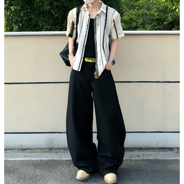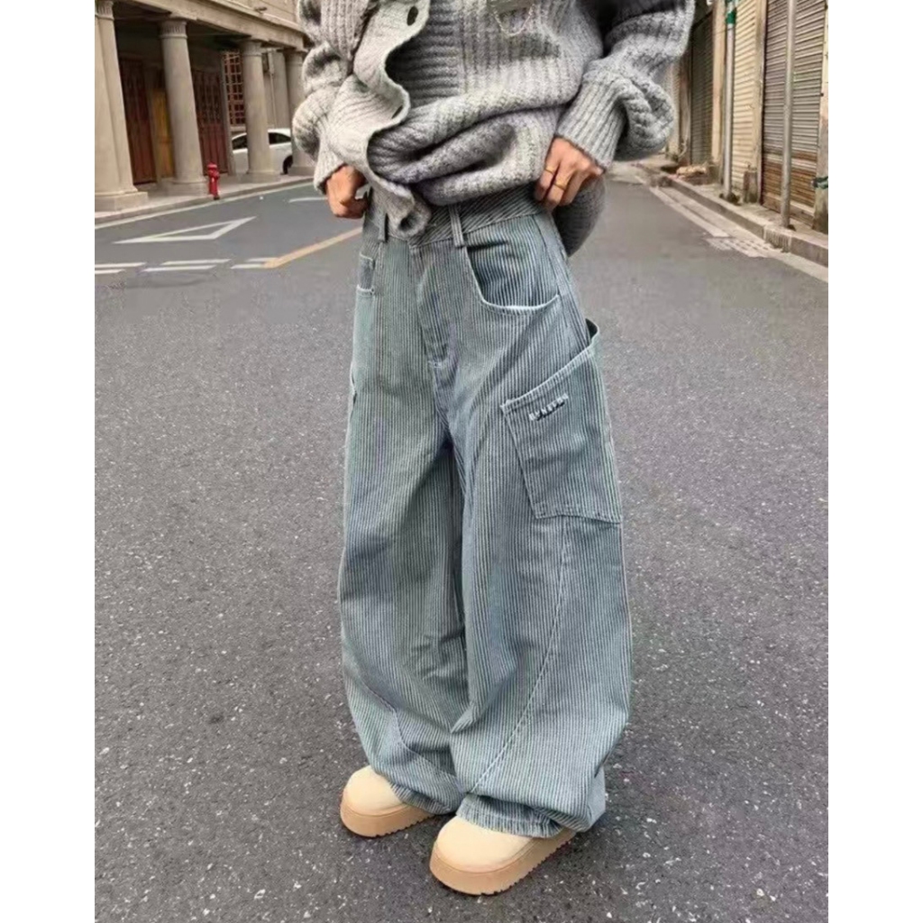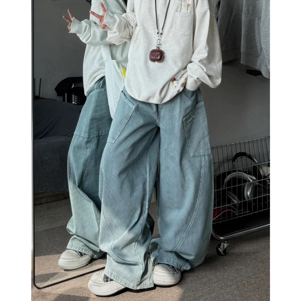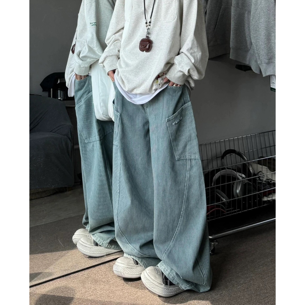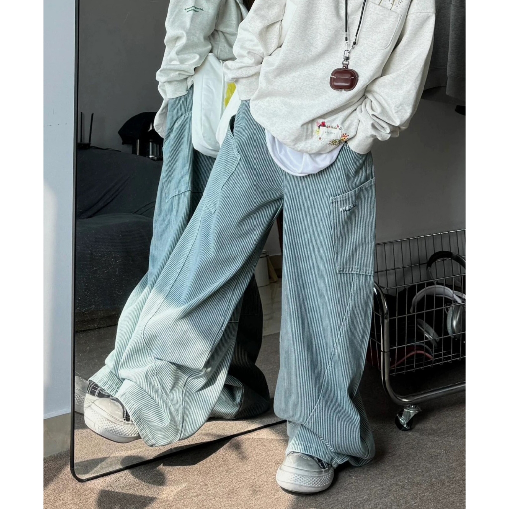 【K-2】美式復古 水洗藍 豎條 條紋 彎刀褲 工作褲 特殊設計 寬褲 闊腿褲 長褲 坑條 條紋彎刀褲【JNZ120】M|L|XL|XXLCargoK-2 Fashionboy