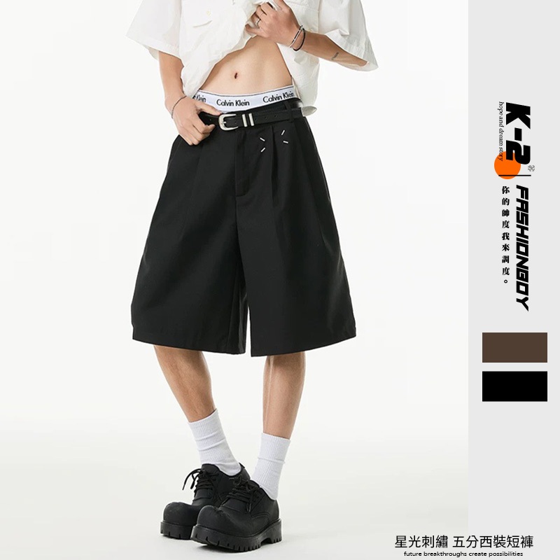 【K-2】CITYBOY 星光刺繡 五分褲 西裝褲 短褲 五分西裝褲 休閒短褲 西裝短褲 五分西褲 K2【JH308】咖色,M|咖色,L|咖色,XL|咖色,XXL|黑色,M|黑色,L|黑色,XL|黑色,XXLK-2 Fashionboy