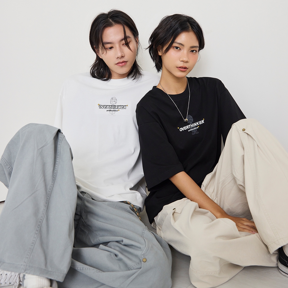LAKING-率性人物繡花印圖短T黑色,M|黑色,L|黑色,XL|白色,M|白色,L|白色,XLT-ShirtsLAKING官方旗艦店