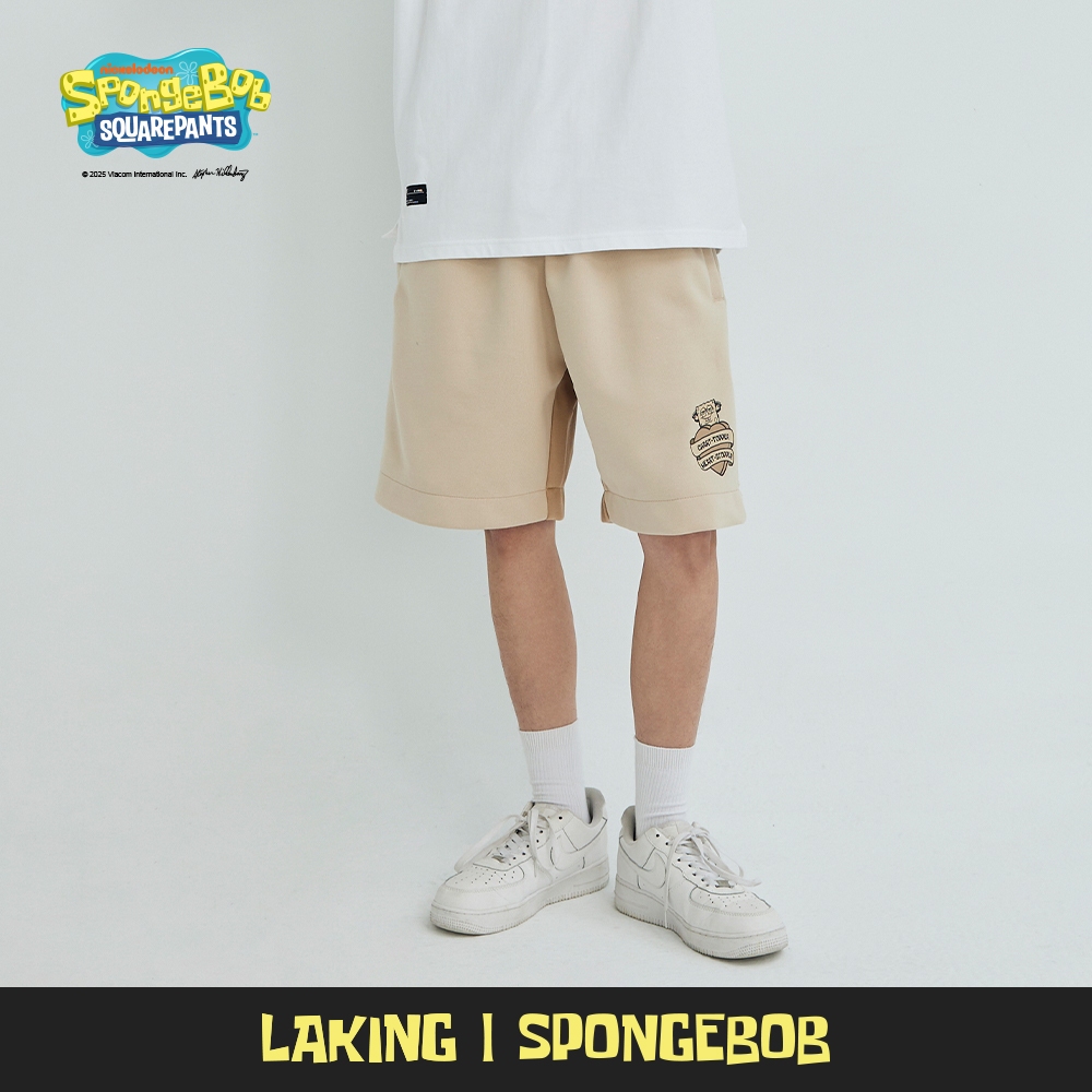LAKING-海綿寶寶-心動冠軍拼接休閒短褲黑色,M|黑色,L|黑色,XL|卡其色,M|卡其色,L|卡其色,XLLAKING官方旗艦店