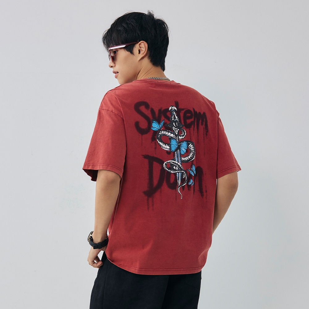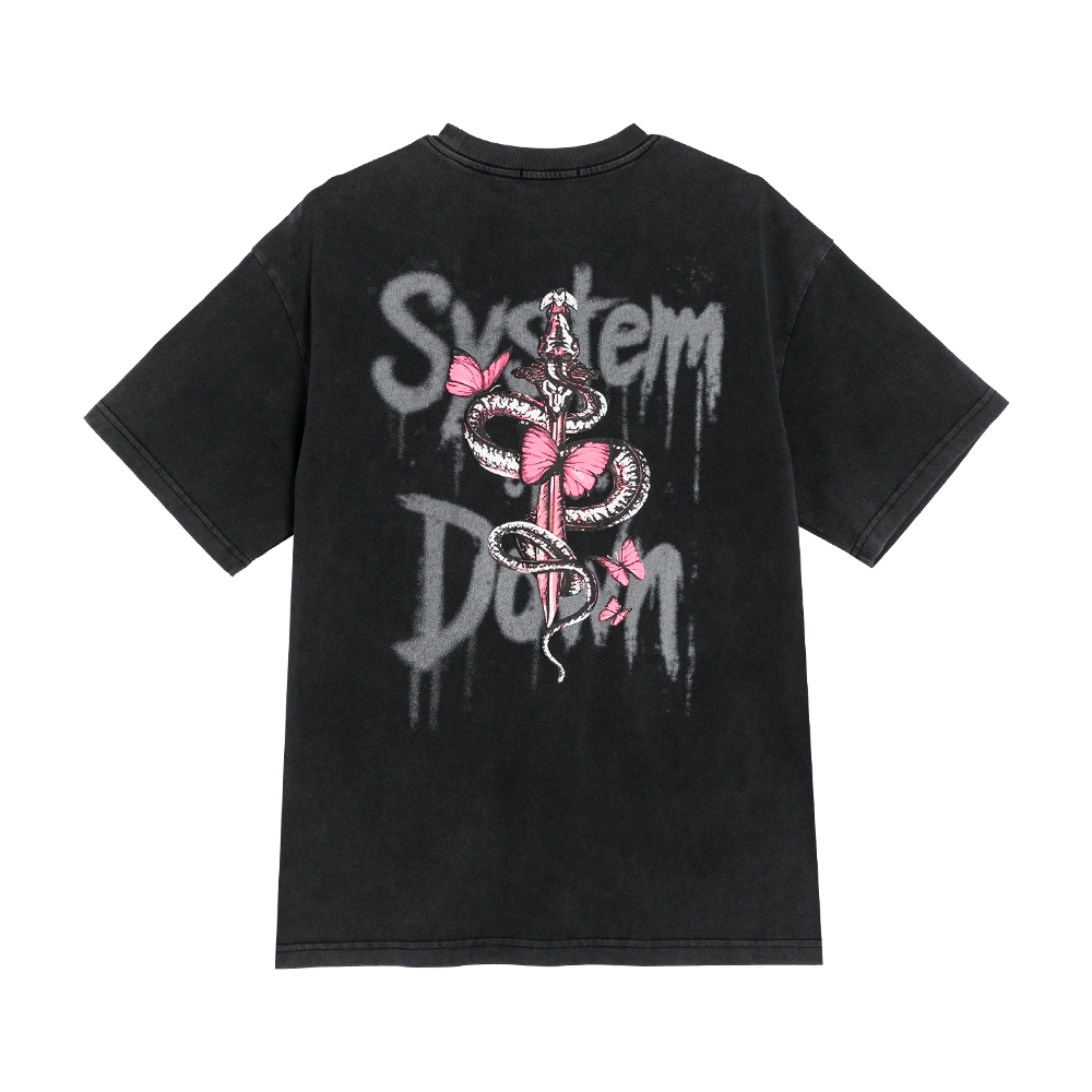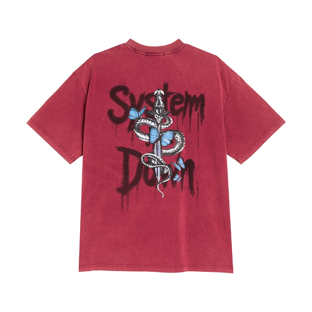 LAKING-蝴蝶蛇盤劍水洗短T黑色,M|黑色,L|黑色,XL|紅色,M|紅色,L|紅色,XLT-ShirtsLAKING官方旗艦店