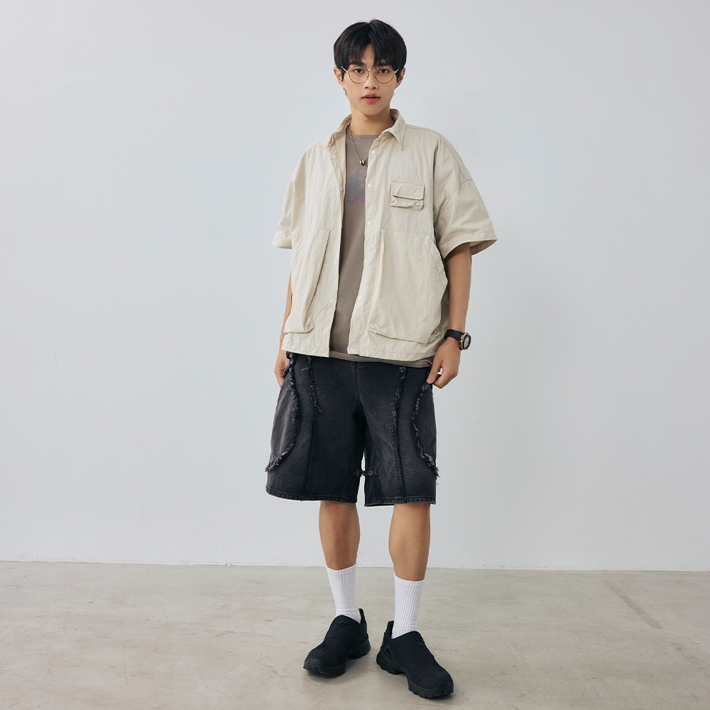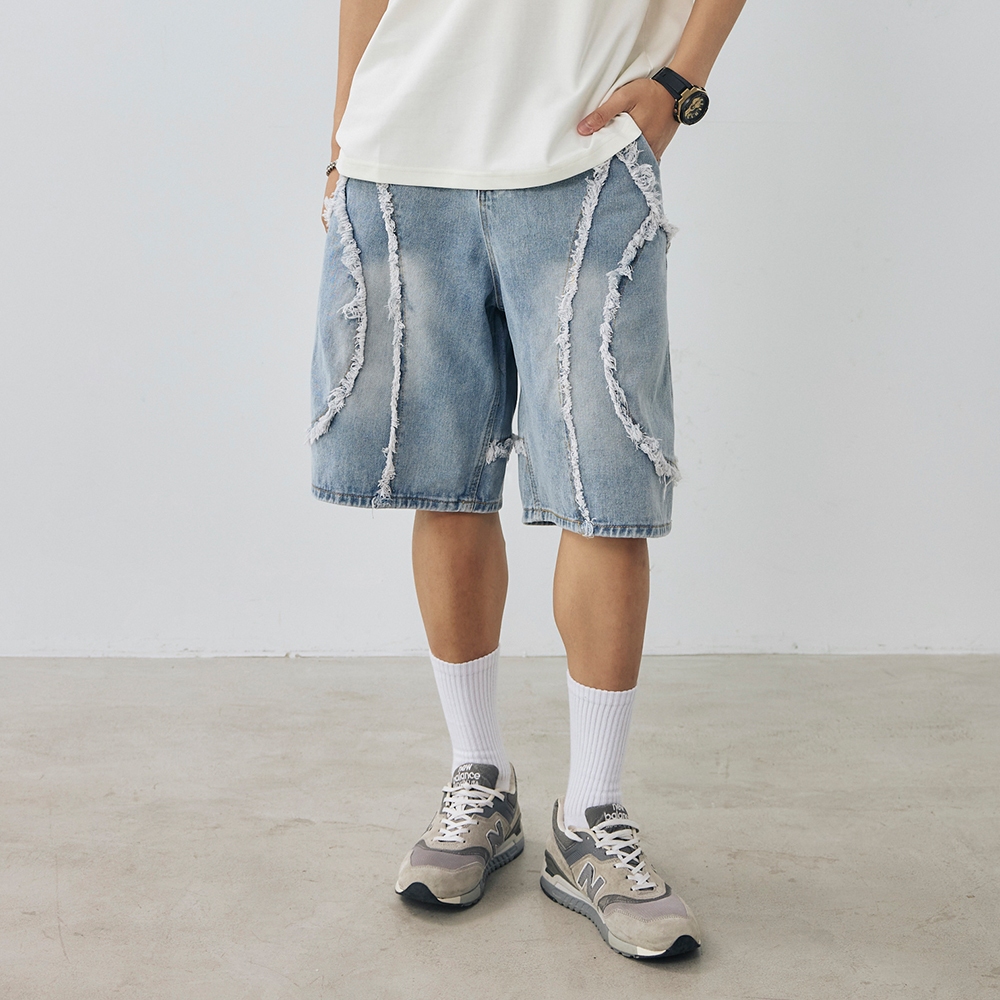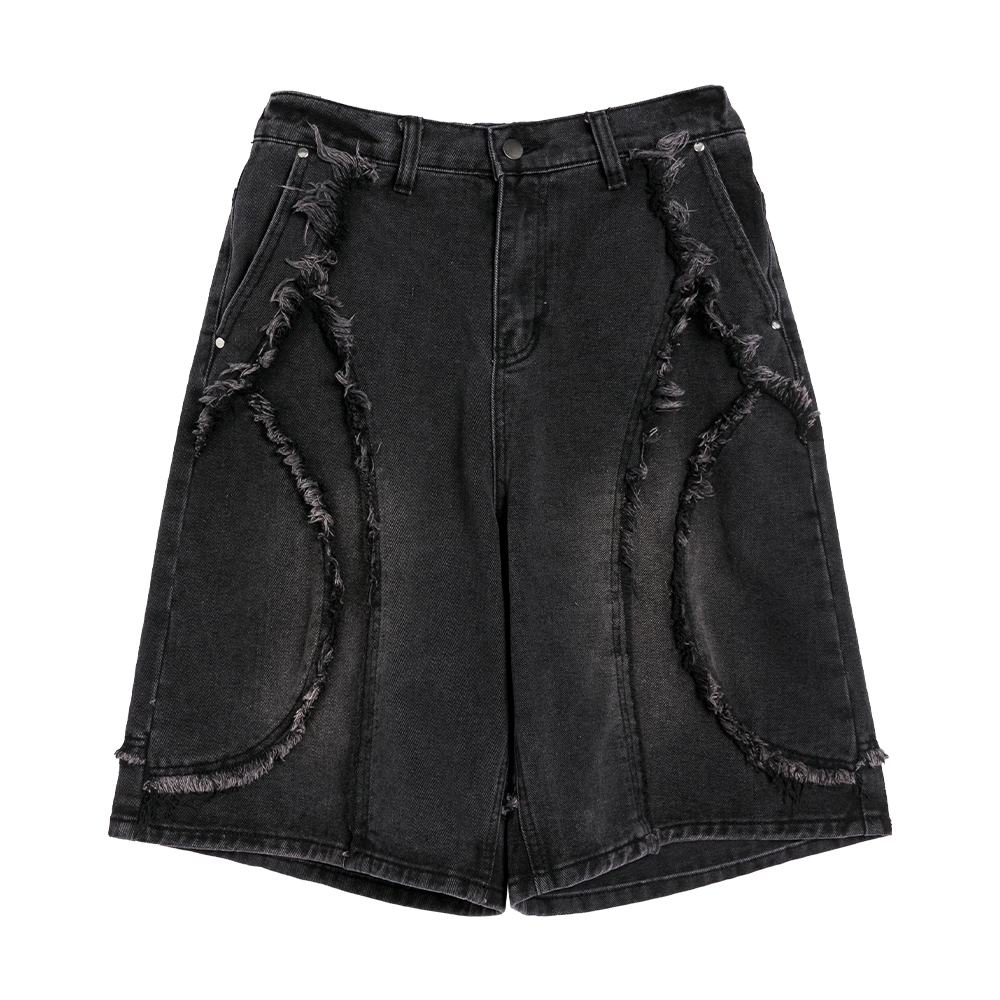 LAKING-抽鬚造型牛仔短褲黑色,M|黑色,L|黑色,XL|藍色,M|藍色,L|藍色,XLLAKING官方旗艦店