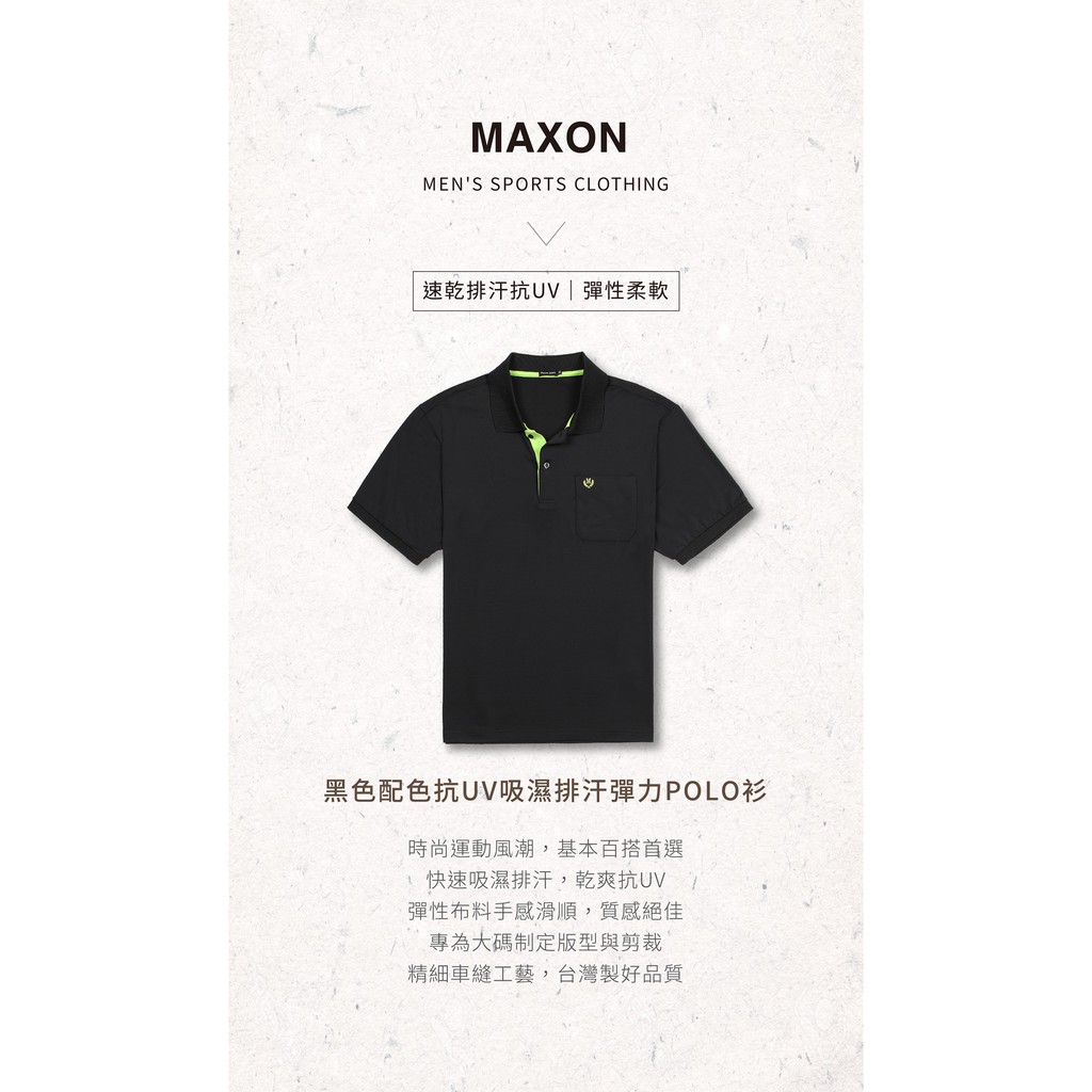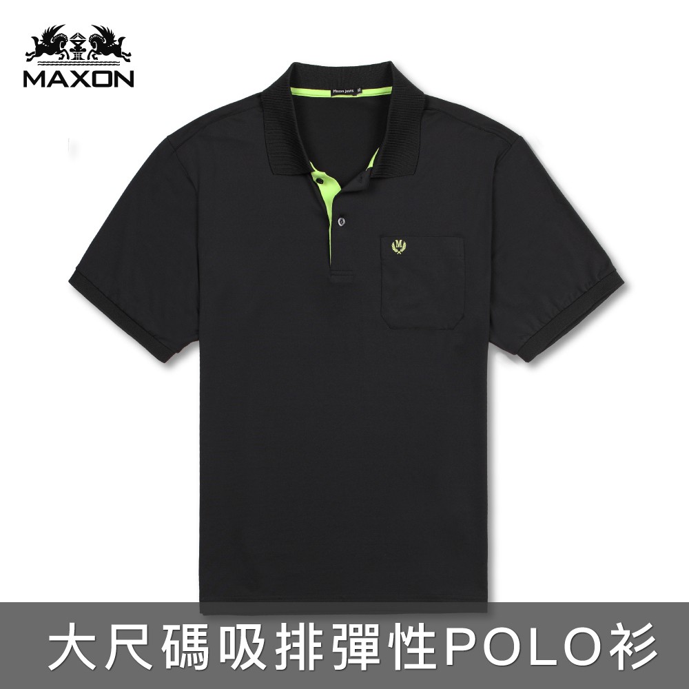 【MAXON大尺碼】黑色配色抗UV吸濕排汗彈力口袋POLO衫XL-4L 加大尺碼 免運 推薦 台灣製91725-88XL請聊聊|2L|3L請聊聊|4L|客訂3LPolo ShirtsMAXON馬森大尺碼專賣
