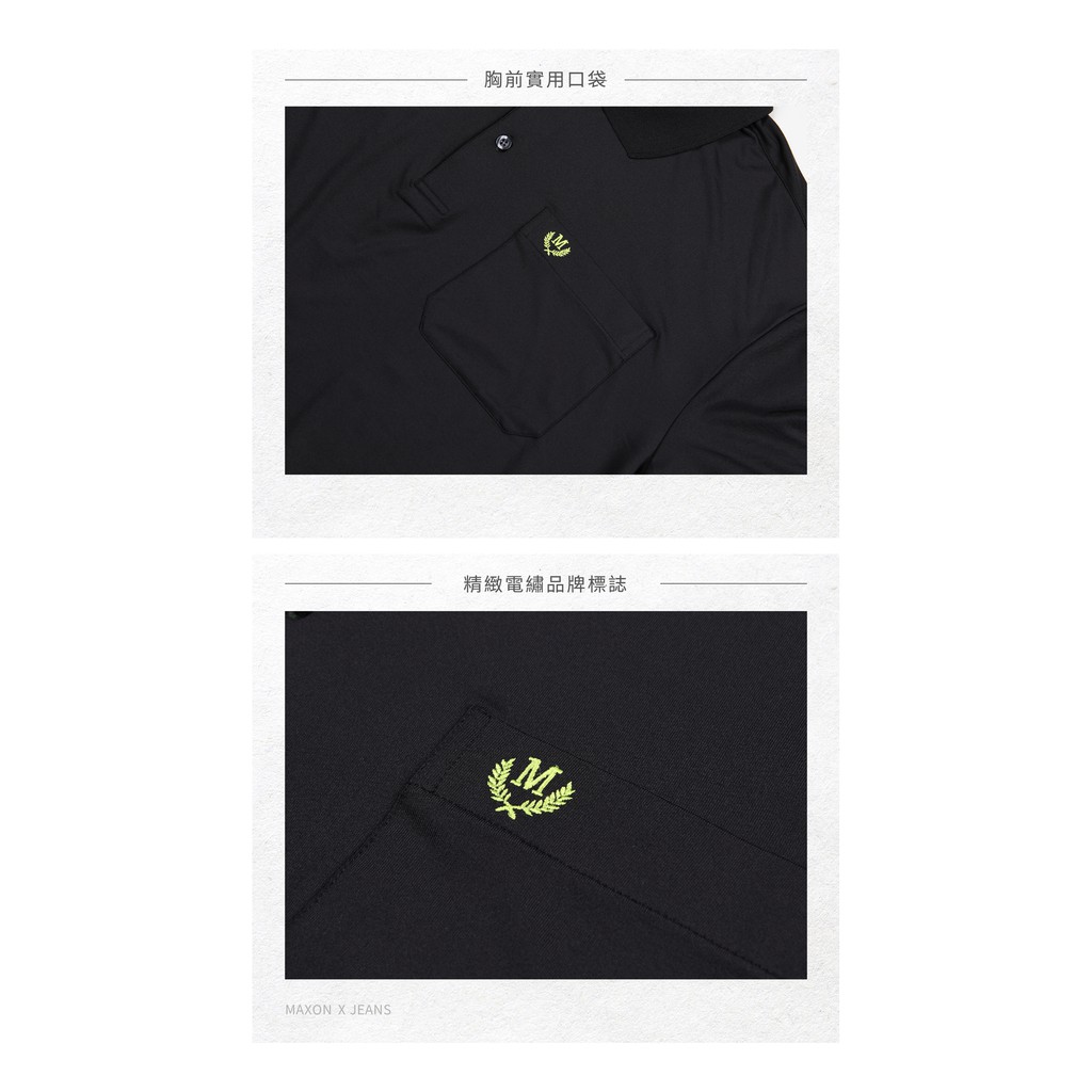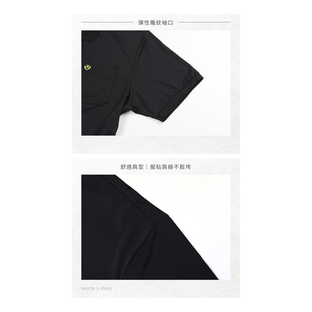 【MAXON大尺碼】黑色配色抗UV吸濕排汗彈力口袋POLO衫XL-4L 加大尺碼 免運 推薦 台灣製91725-88