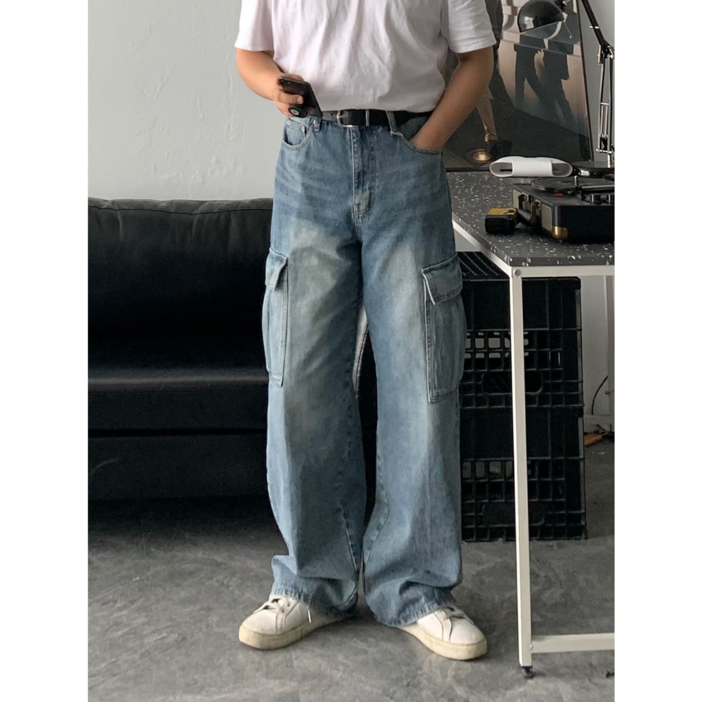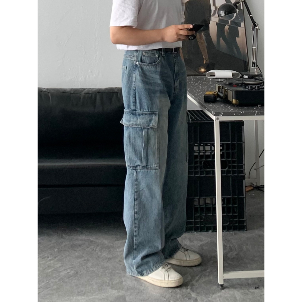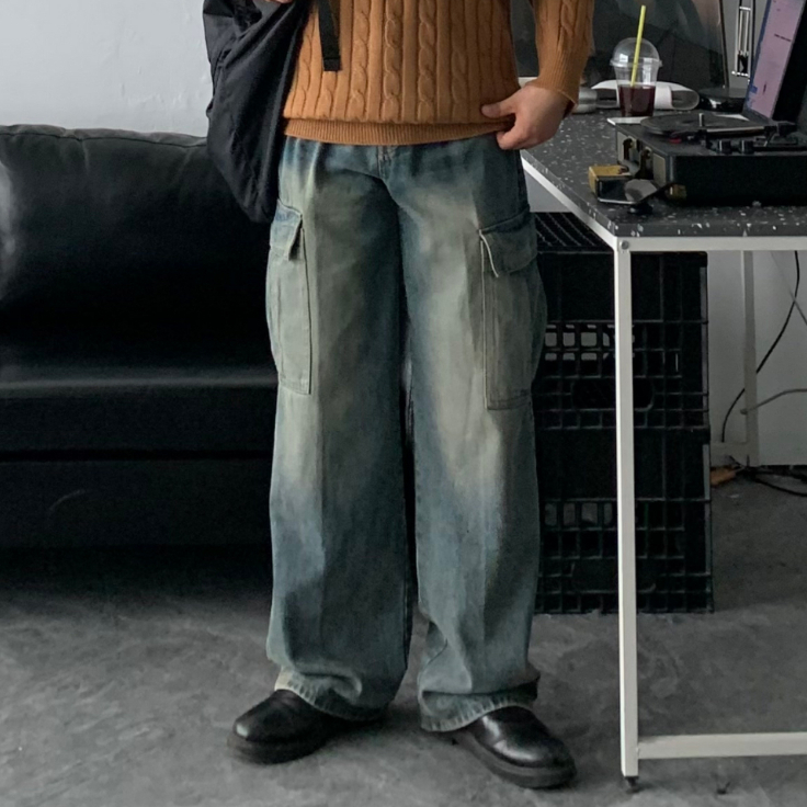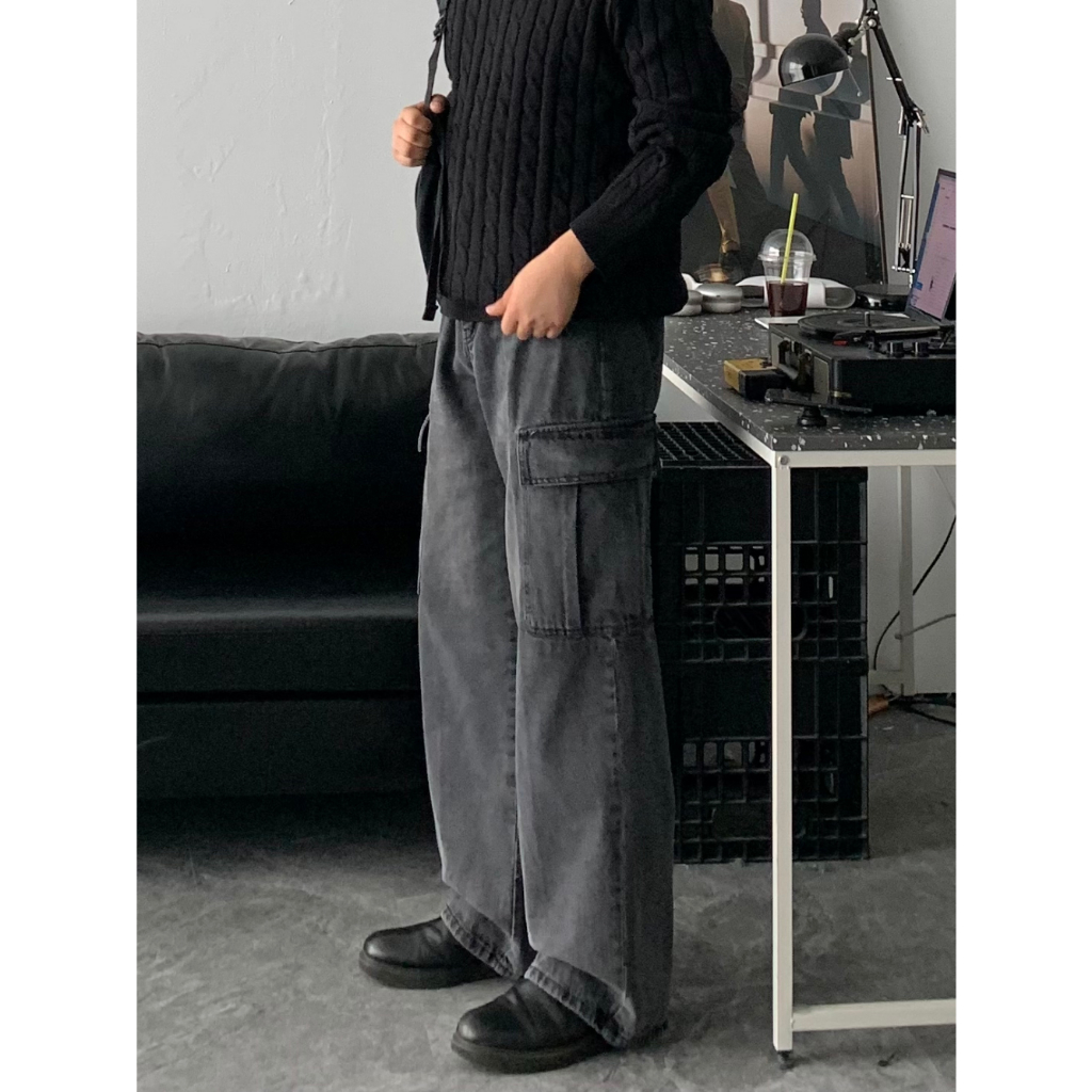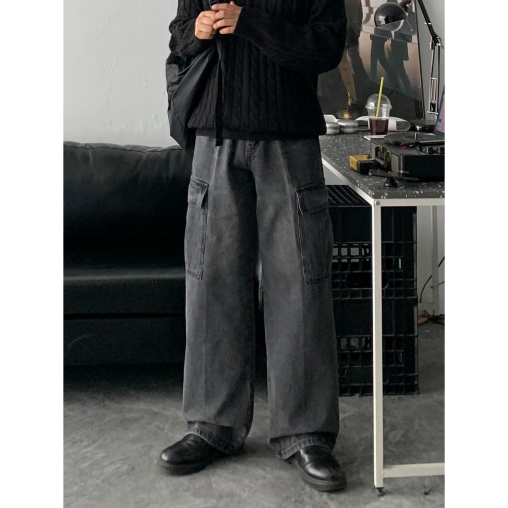 【Metanoia】韓國設計 水洗工裝落地牛仔褲藍色,S|藍色,M|深藍,M|深灰,S|藍色,L|深藍,S|深藍,L|深灰,M|深灰,LMetanoia 正韓服飾 & MdoC 總代理