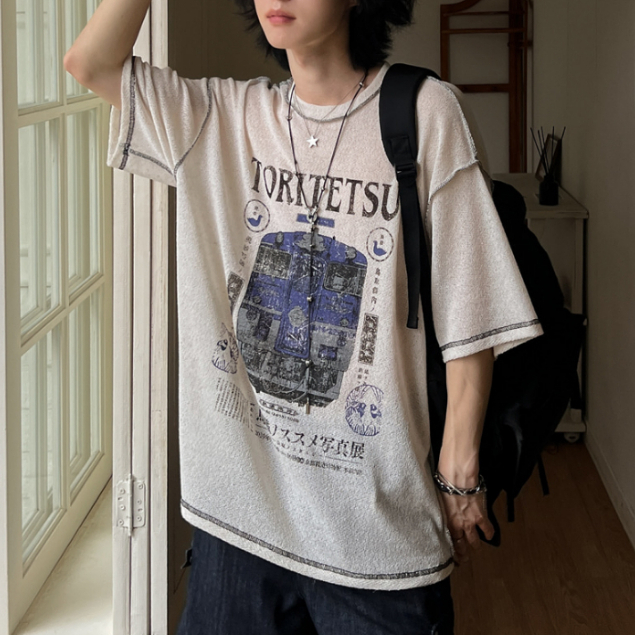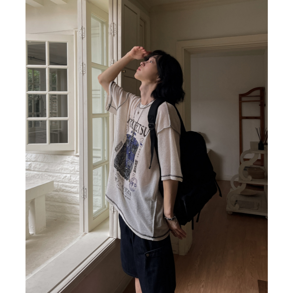 【Metanoia】🇰🇷韓製 拼接印花短袖上衣黑色,F|象牙色,FT-ShirtsMetanoia 正韓服飾 & MdoC 總代理