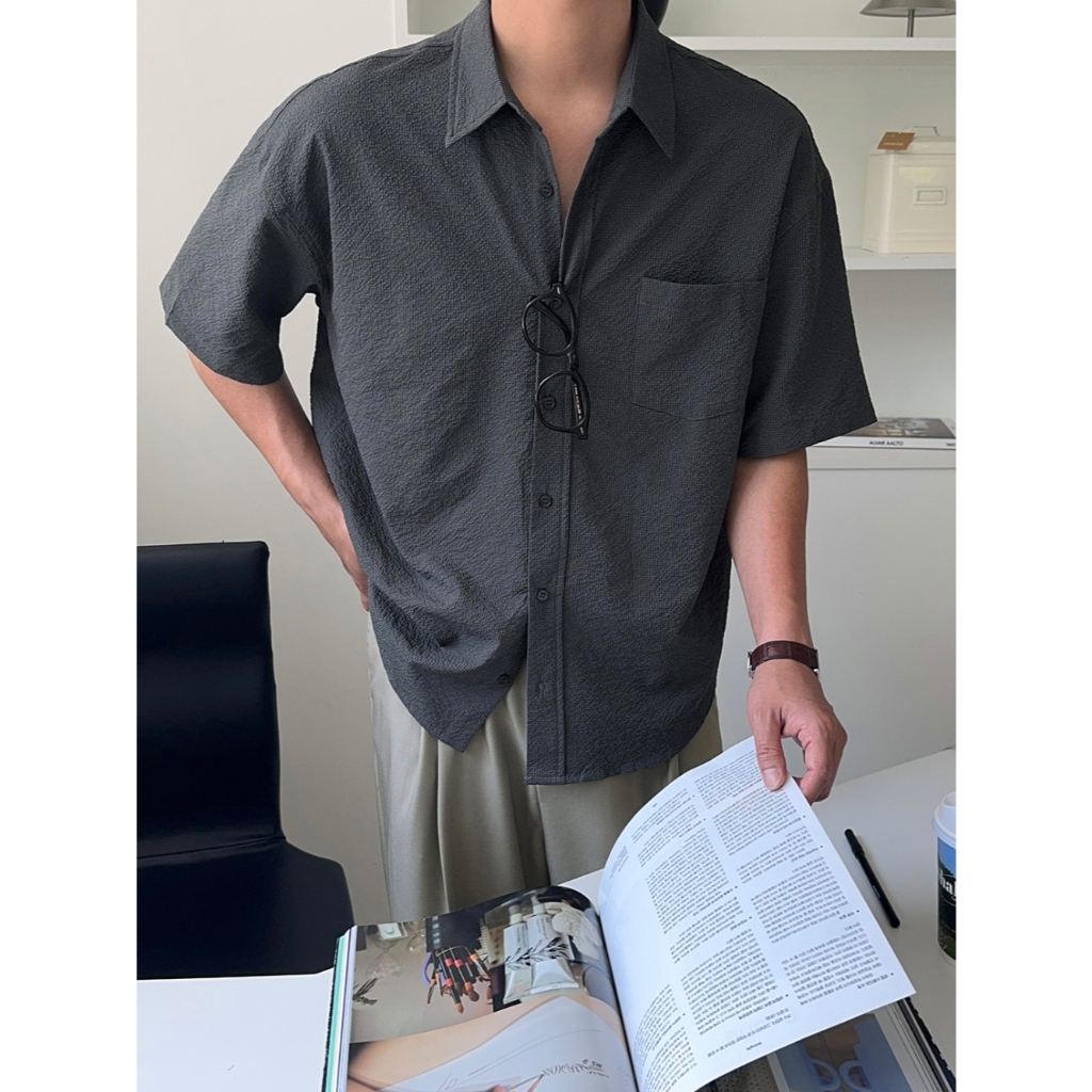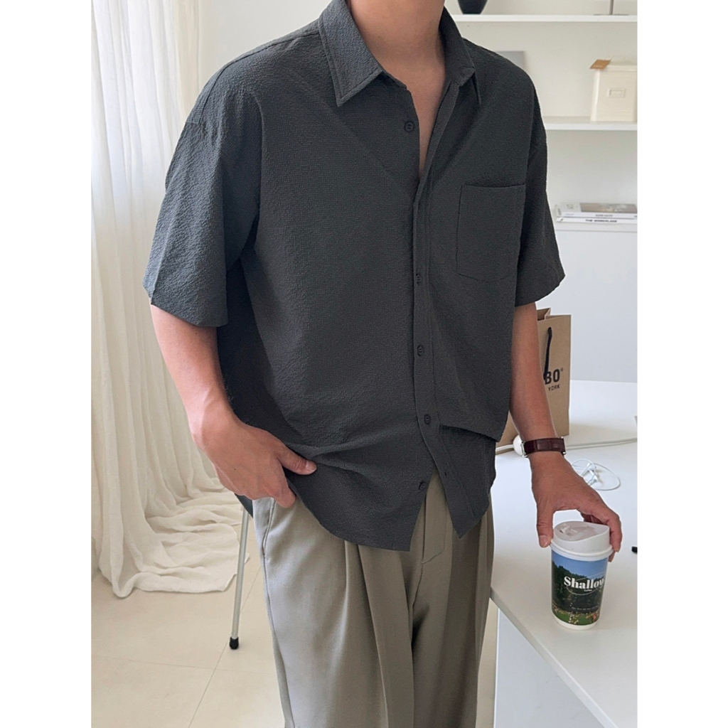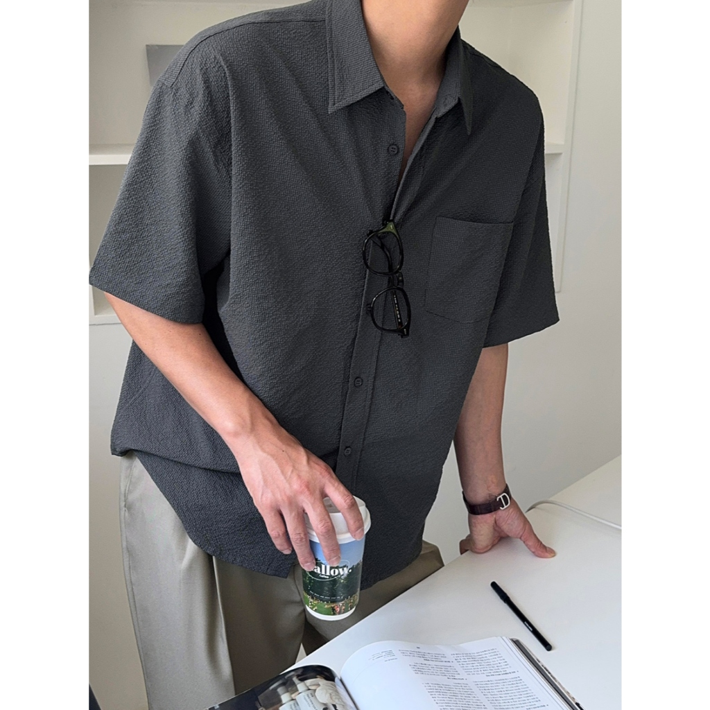 【Metanoia】🇰🇷韓製 泡泡沙短袖襯衫白色,F|黑色,F|深灰,FShirtsMetanoia 正韓服飾 & MdoC 總代理