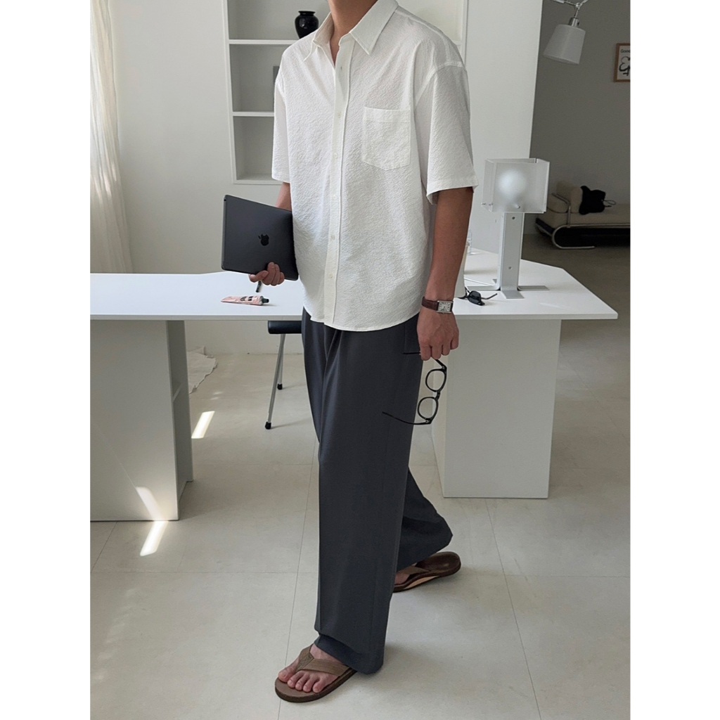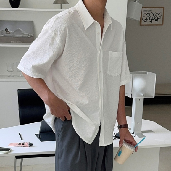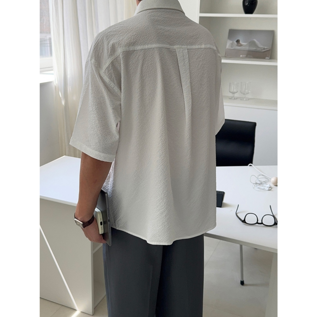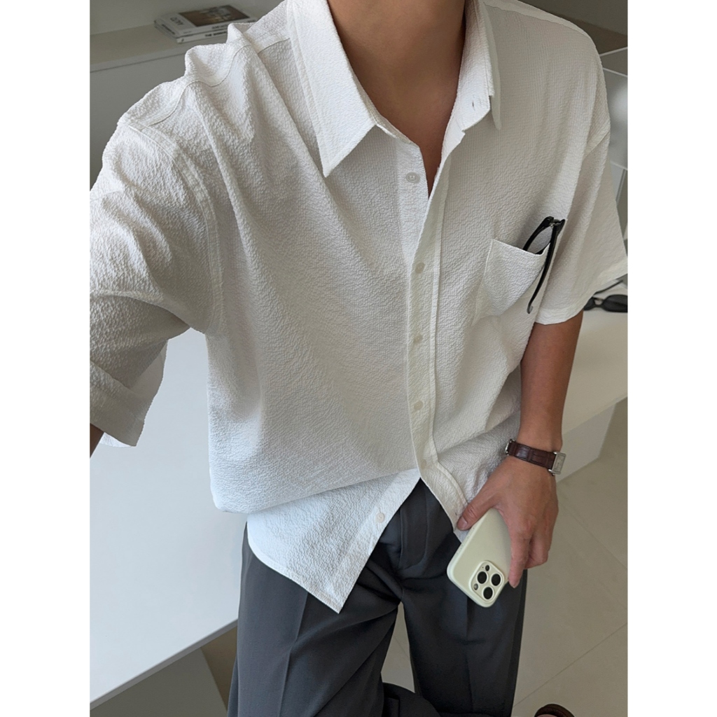 【Metanoia】🇰🇷韓製 泡泡沙短袖襯衫白色,F|黑色,F|深灰,FShirtsMetanoia 正韓服飾 & MdoC 總代理