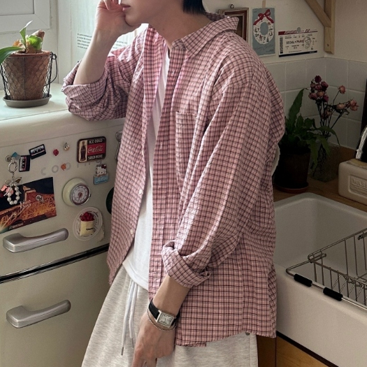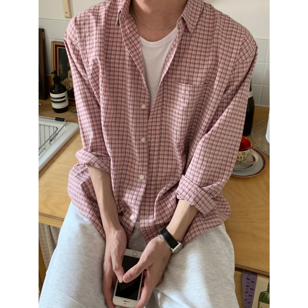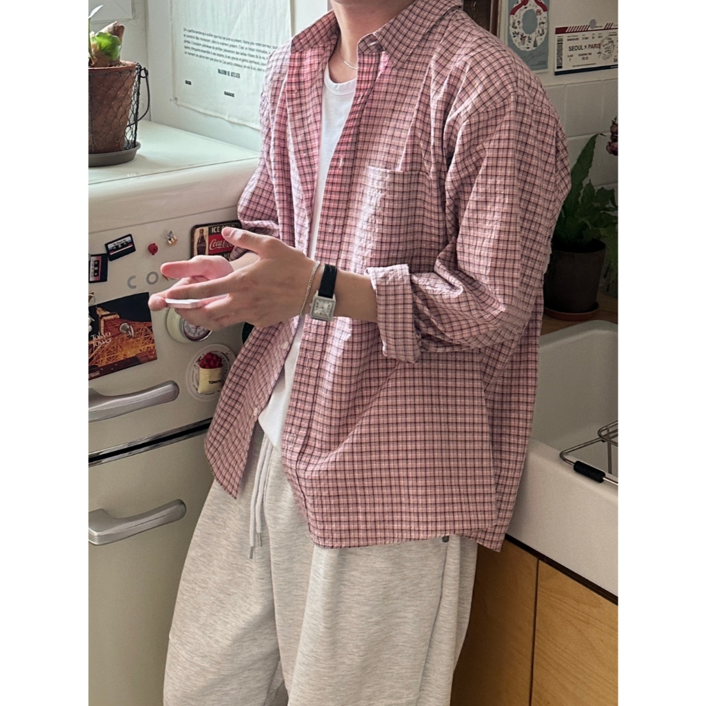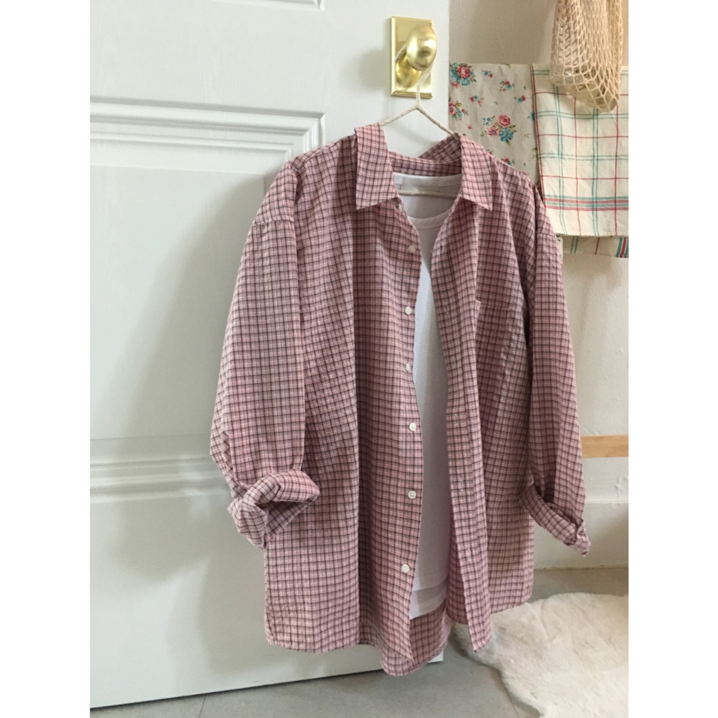 【Metanoia】🇰🇷韓製 格紋長袖襯衫粉色,F|米色,F|黑色,F|綠色,F|白色,FShirtsMetanoia 正韓服飾 & MdoC 總代理