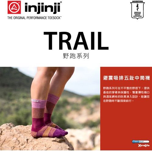 【INJINJI】TRAIL野跑避震吸排五趾中筒襪 [黑色] 避震吸排五趾襪 NAA3795黑,S|黑,M|黑,L|黑,XLGOHIKING戶外用品專賣店