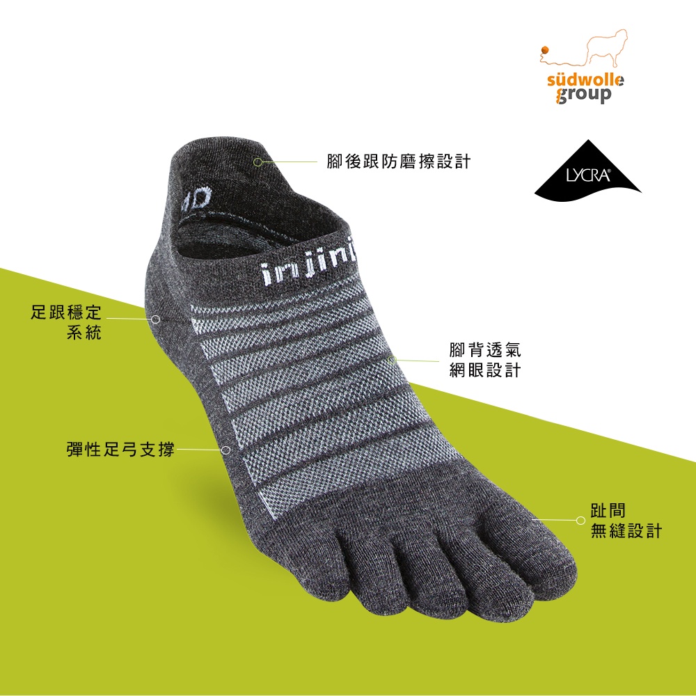 【injinji】Run輕量羊毛五趾隱形襪NX(石板灰) – NAA0794 | 羊毛材質 防臭抗菌 吸濕排汗 登山必備石板灰,S|石板灰,M|石板灰,LGOHIKING戶外用品專賣店