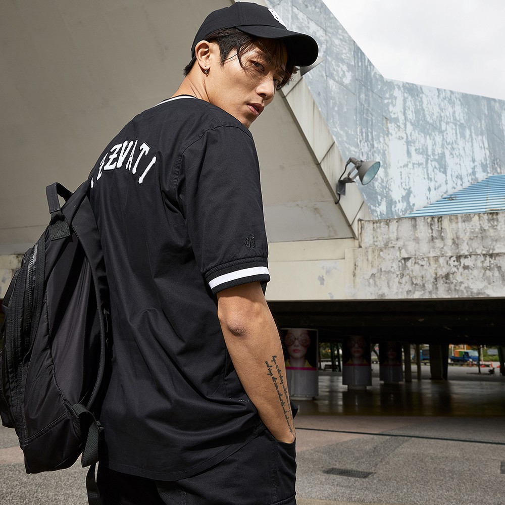 • IZZVATI-羅紋棒球襯衫-黑