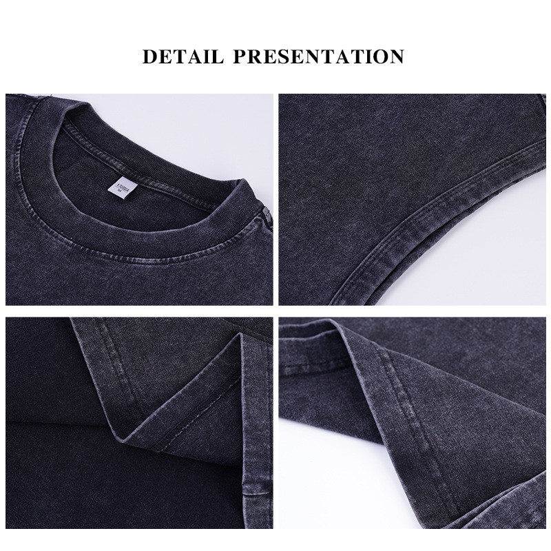 • 【HOT 本舖】230g純棉重磅做舊無袖T恤男女款水洗全棉復古寬鬆背心
