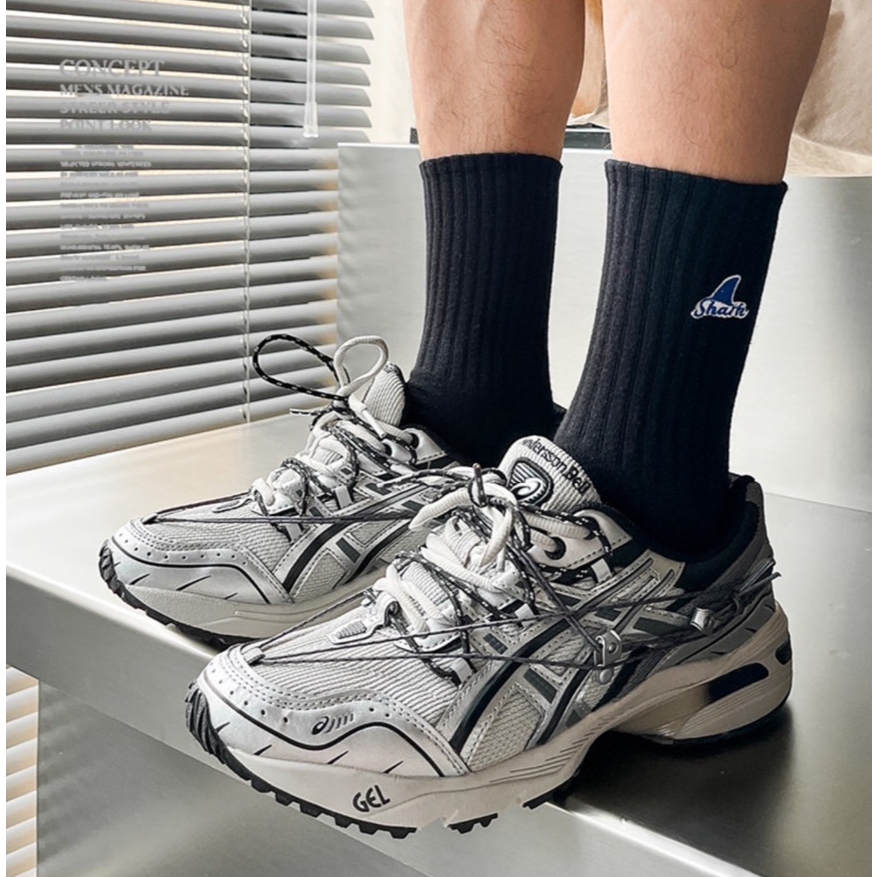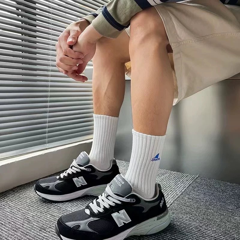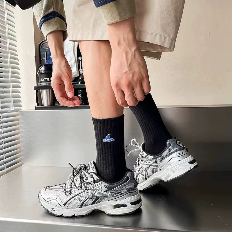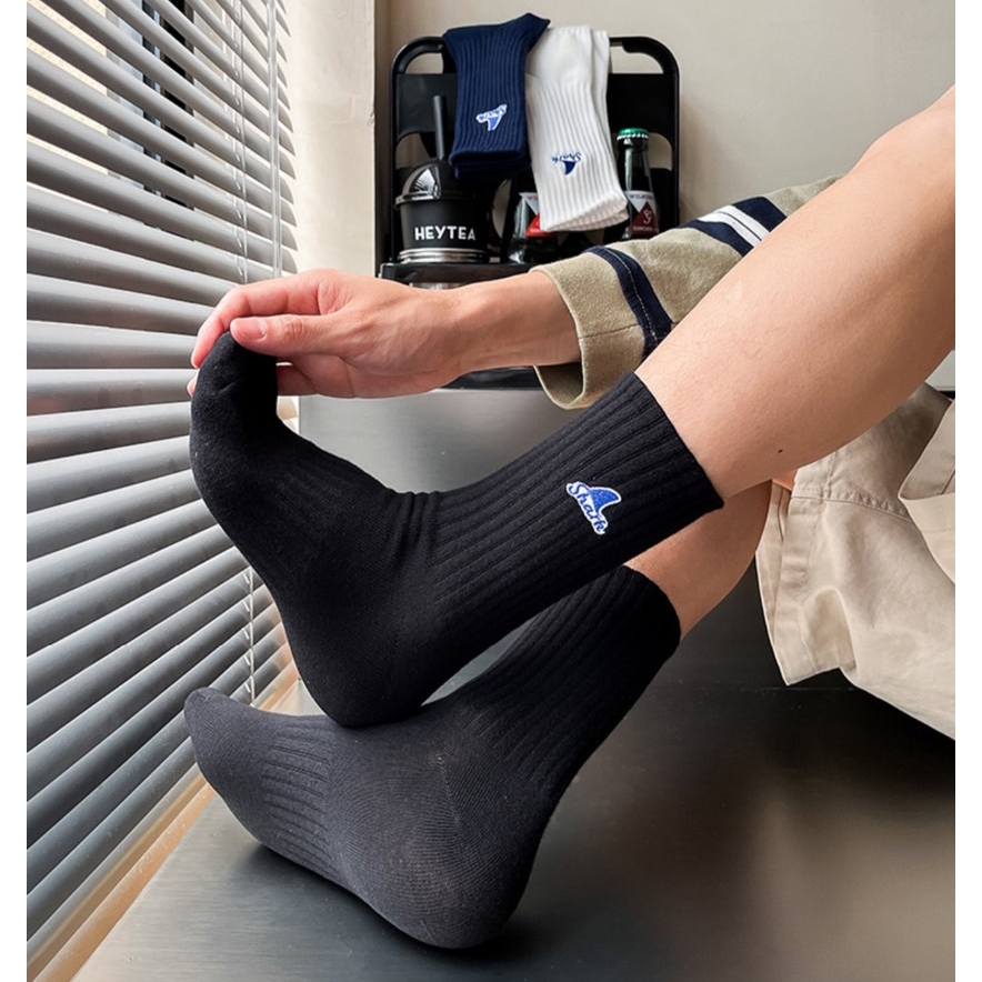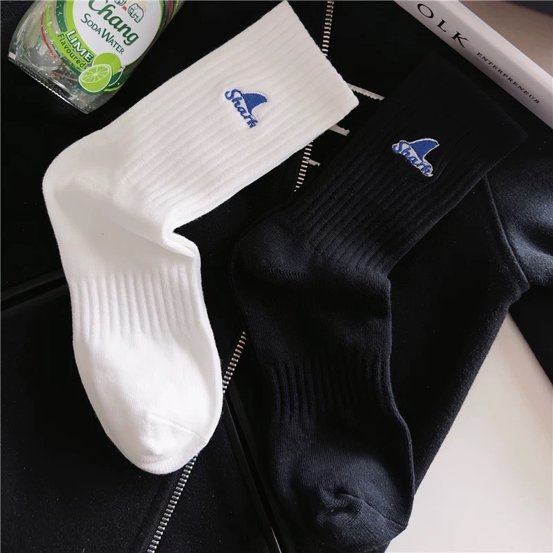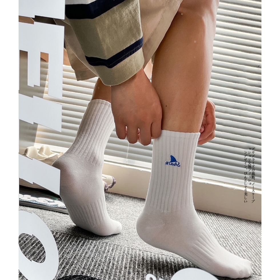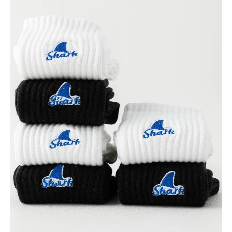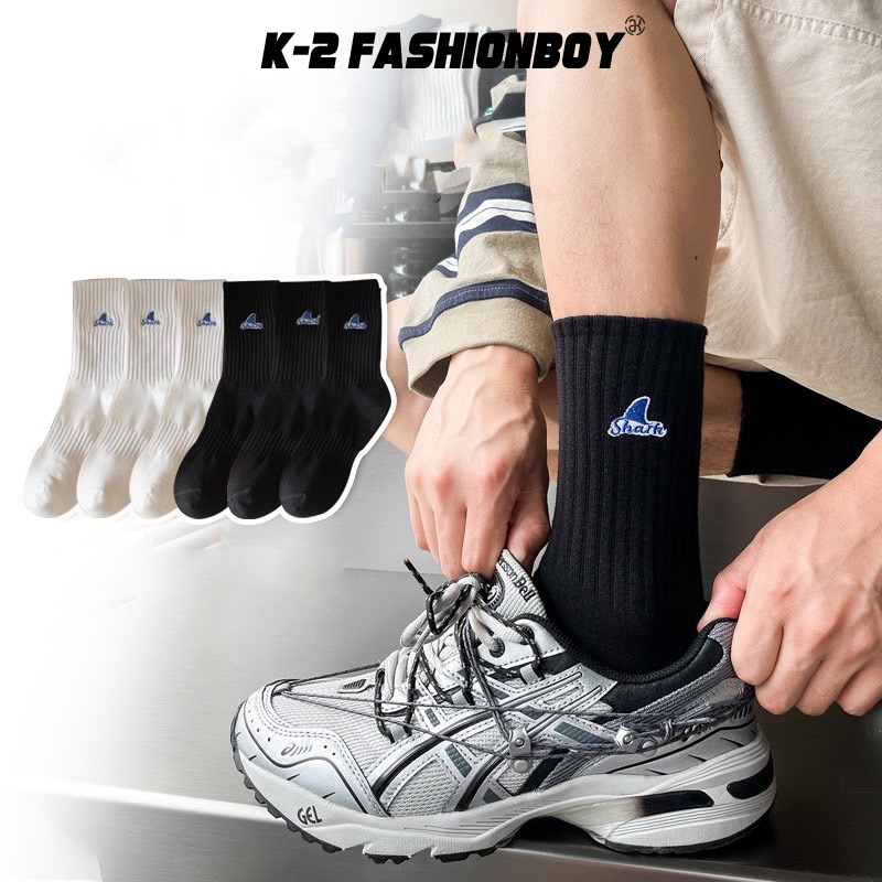 【K-2】SHARK 刺繡 魚鰭 長襪 襪子 純棉 情侶 襪 魚鰭襪 高品質 潮襪 穿搭 刺繡襪 高筒襪【KM142】白色|黑色K-2 Fashionboy