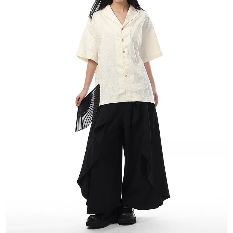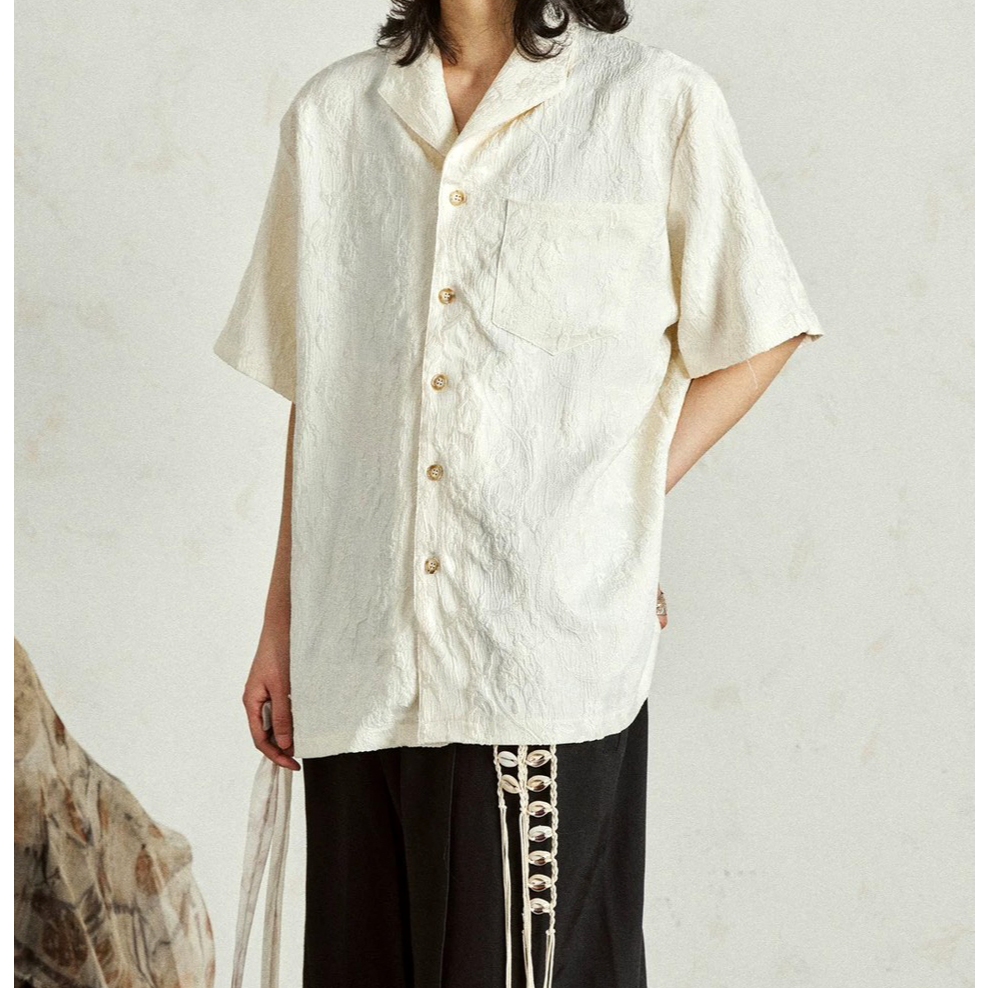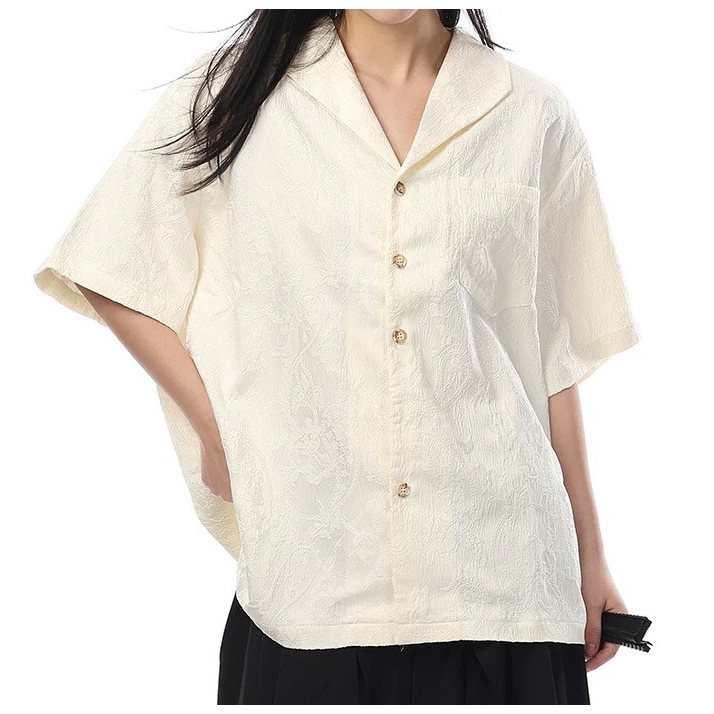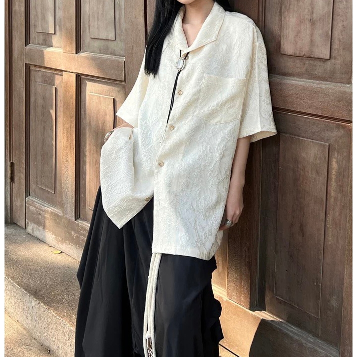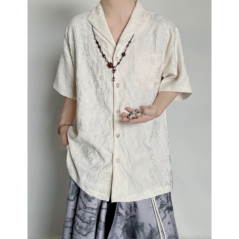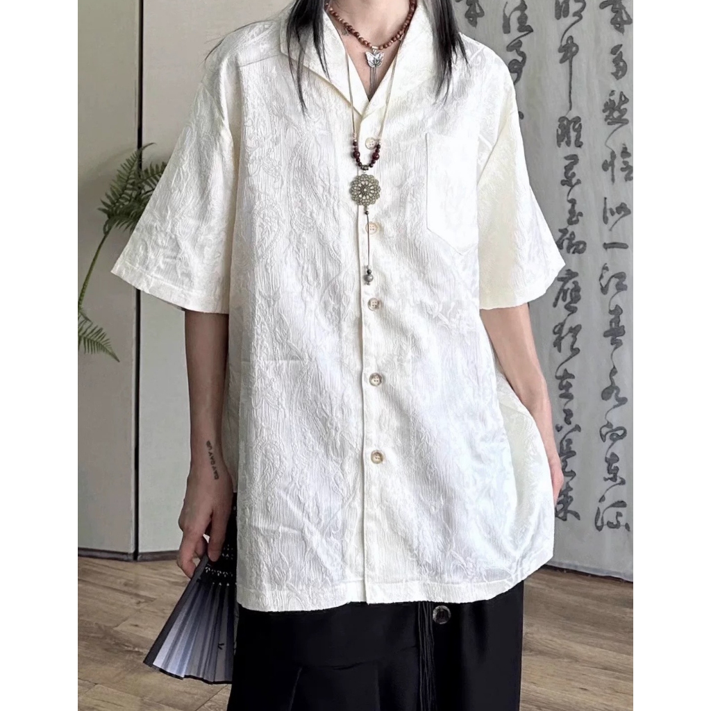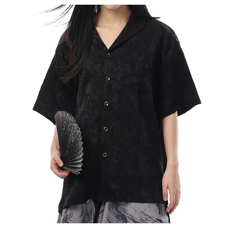 【K-2】新中式 暗紋緹花 浮雕 藝術 開襟襯衫 短袖襯衫 花襯衫 山本耀司 暗黑風 襯衫 寬鬆襯衫 復古【J0165】白杏色,XXL|黑色,L|黑色,XL|黑色,XXL|白杏色,M|黑色,M|白杏色,L|白杏色,XLShirtsK-2 Fashionboy