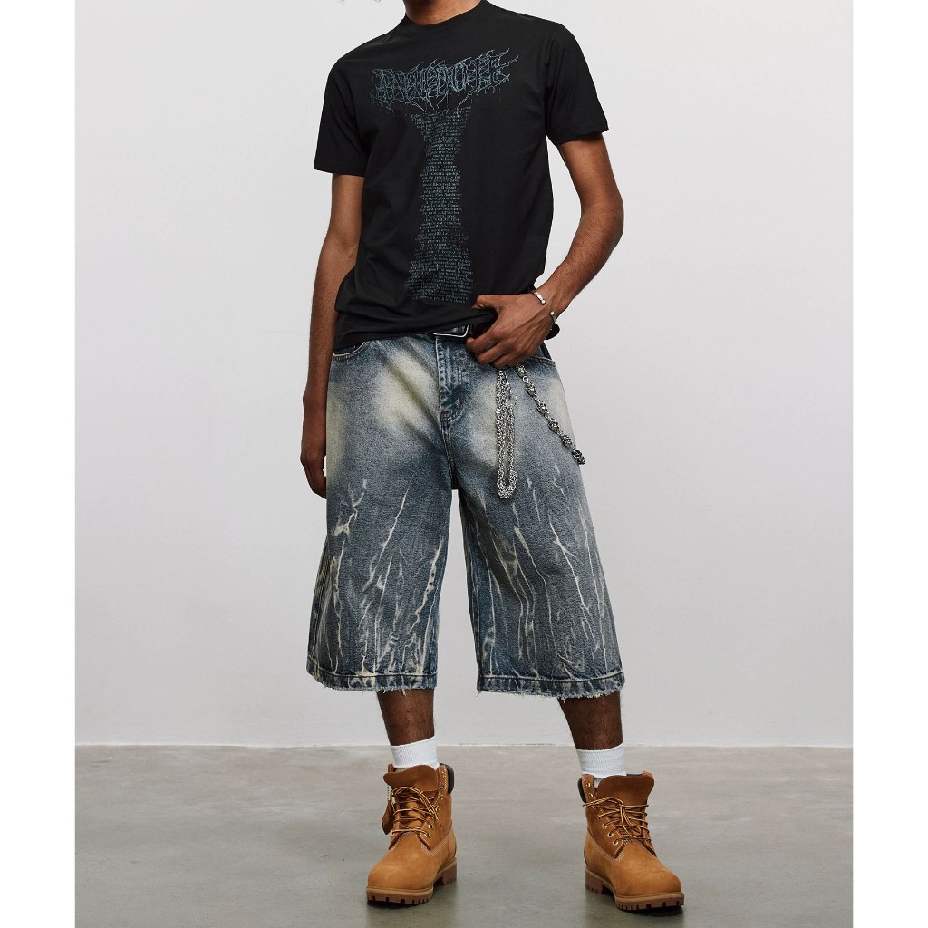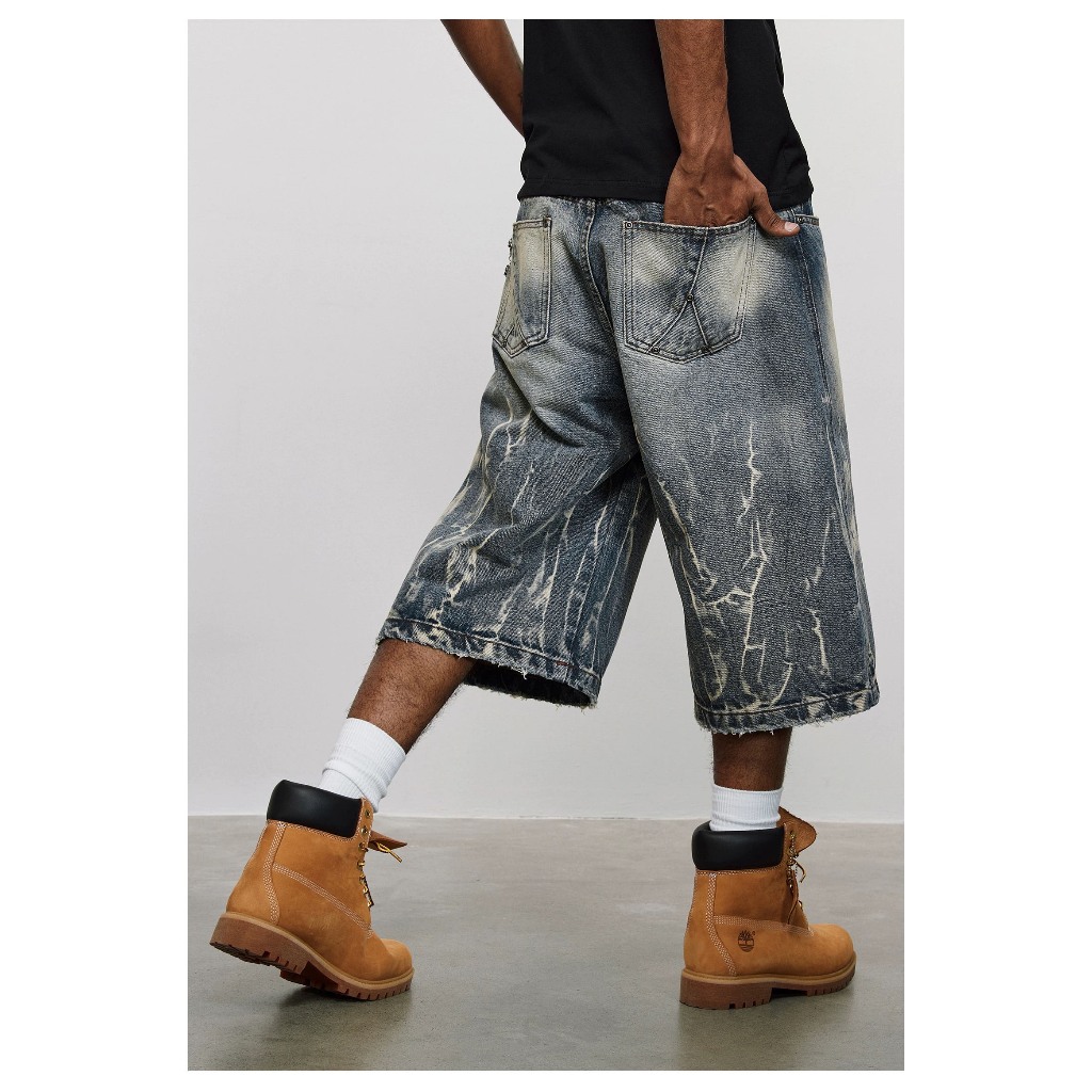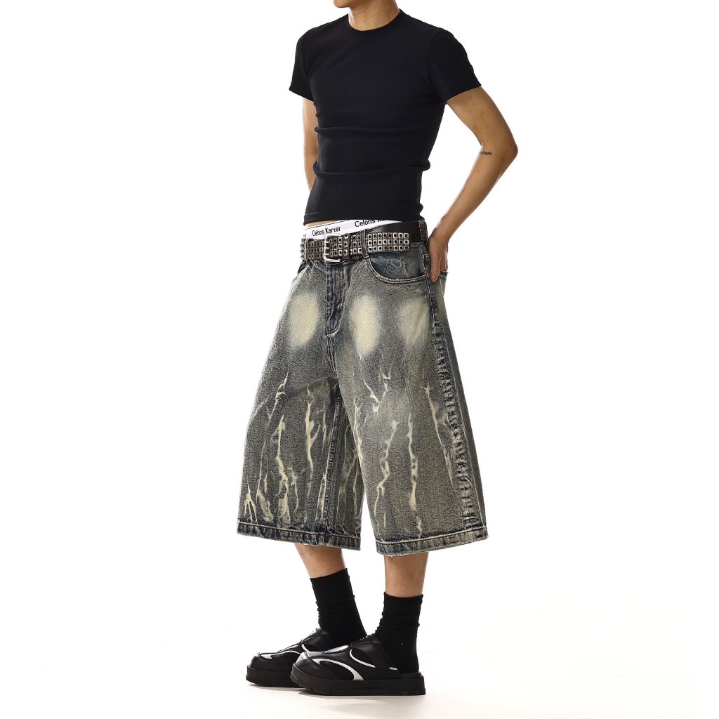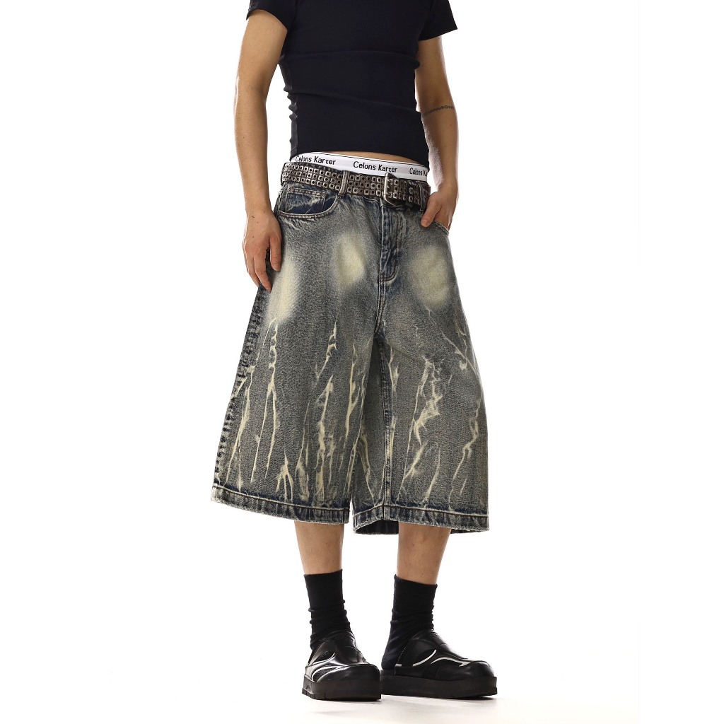 【K-2】美式復古 閃電紋路 水洗 刷紋 五分褲 水洗短褲 閃電 牛仔短褲 復古短褲 短褲 Y2K K2【JN749】M|L|XL|XXLK-2 Fashionboy