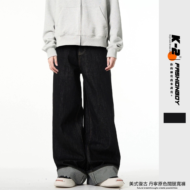 【K-2】美式復古 丹寧原色 70年代 直筒寬褲 復古長褲 牛仔寬褲 直筒褲 寬褲 闊腿褲 長褲 Y2K【JCS977】M|L|XL|XXLK-2 Fashionboy