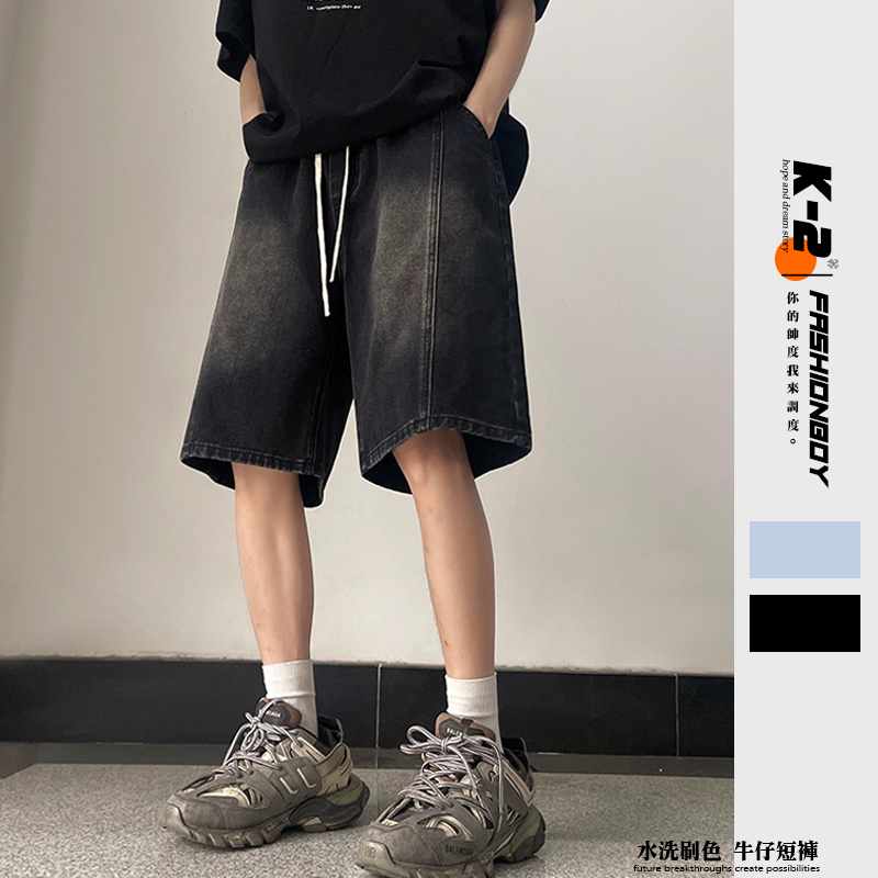 【K-2】水洗刷色 牛仔短褲 車線 漸層 洗水短褲 五分褲 質感 丹寧 抽繩 簡約 韓國歐巴 穿搭【A3239】黑色,L|黑色,XL|黑色,XXL|藍色,M|藍色,L|藍色,XL|藍色,XXL|黑色,MK-2 Fashionboy
