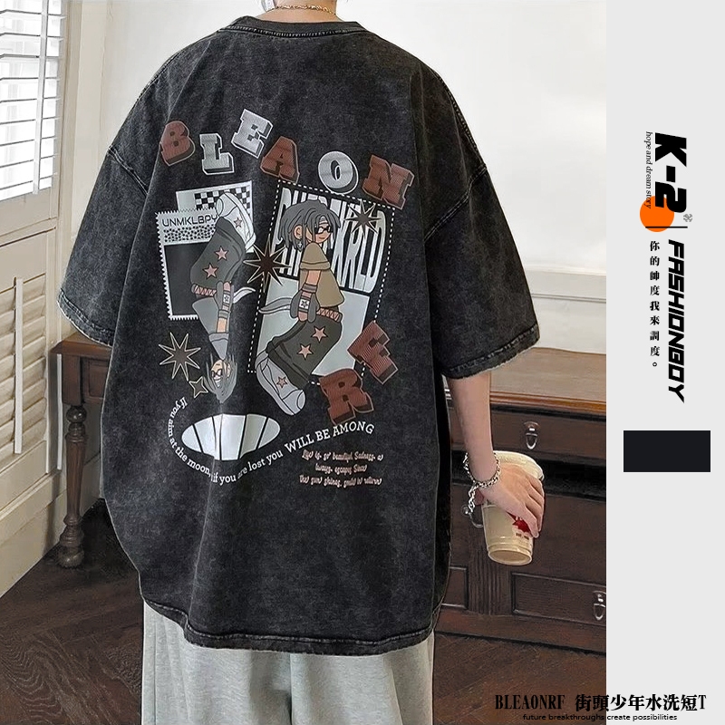 【K-2】CITYBOY BLEAONRF 街頭少年 水洗短T 美式休閒 卡通人物 字母 水洗 短袖 Y2K【WX16】M|L|XLT-ShirtsK-2 Fashionboy