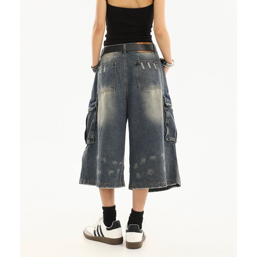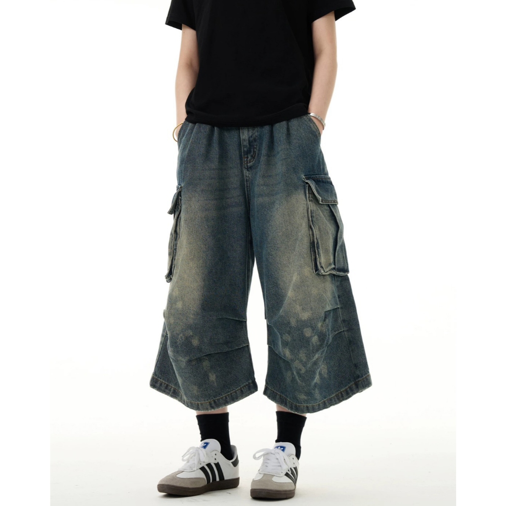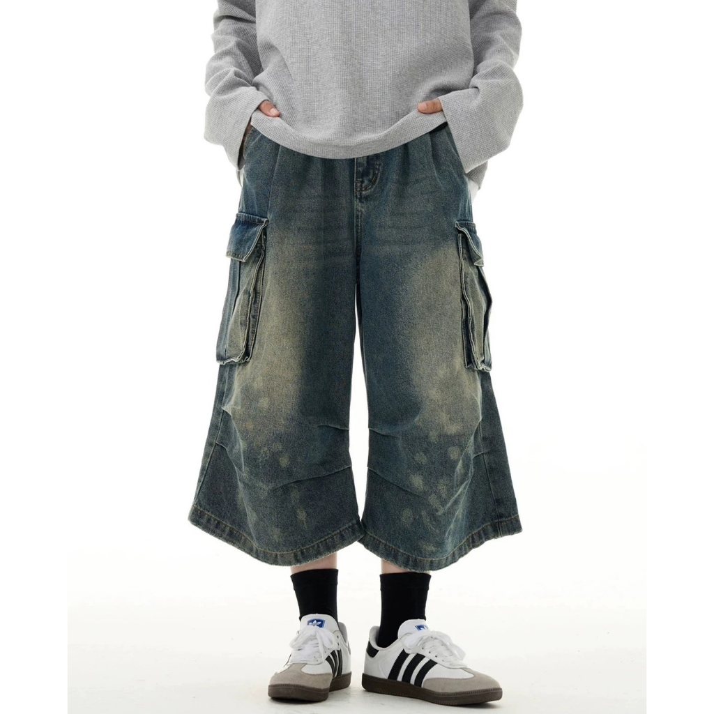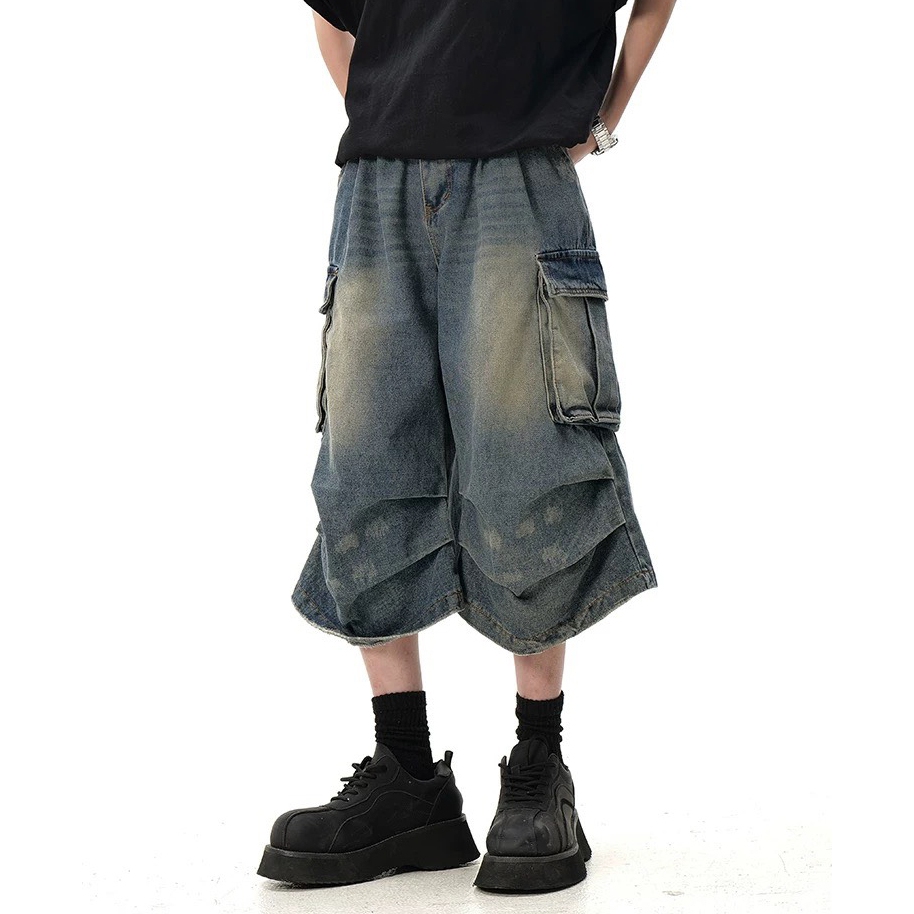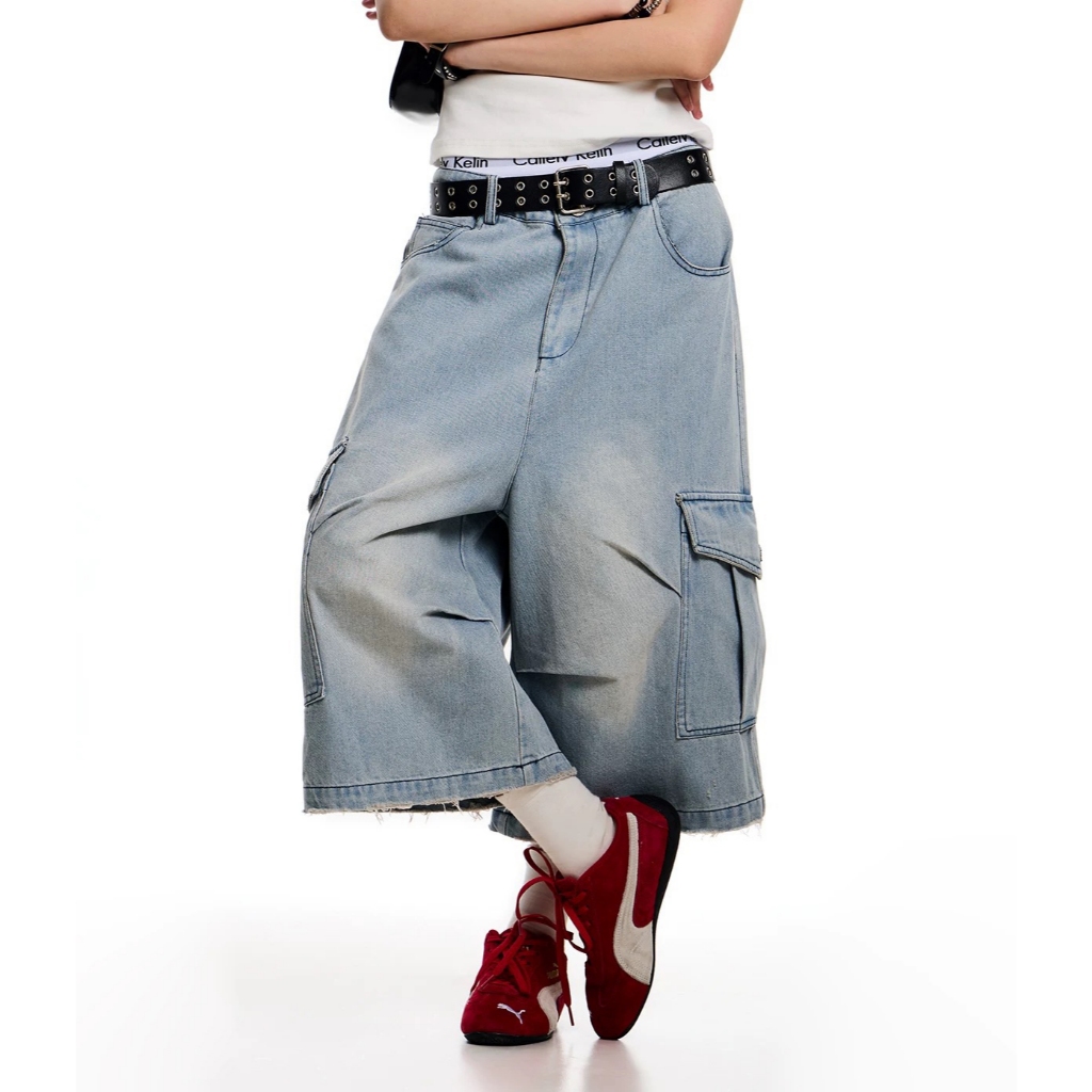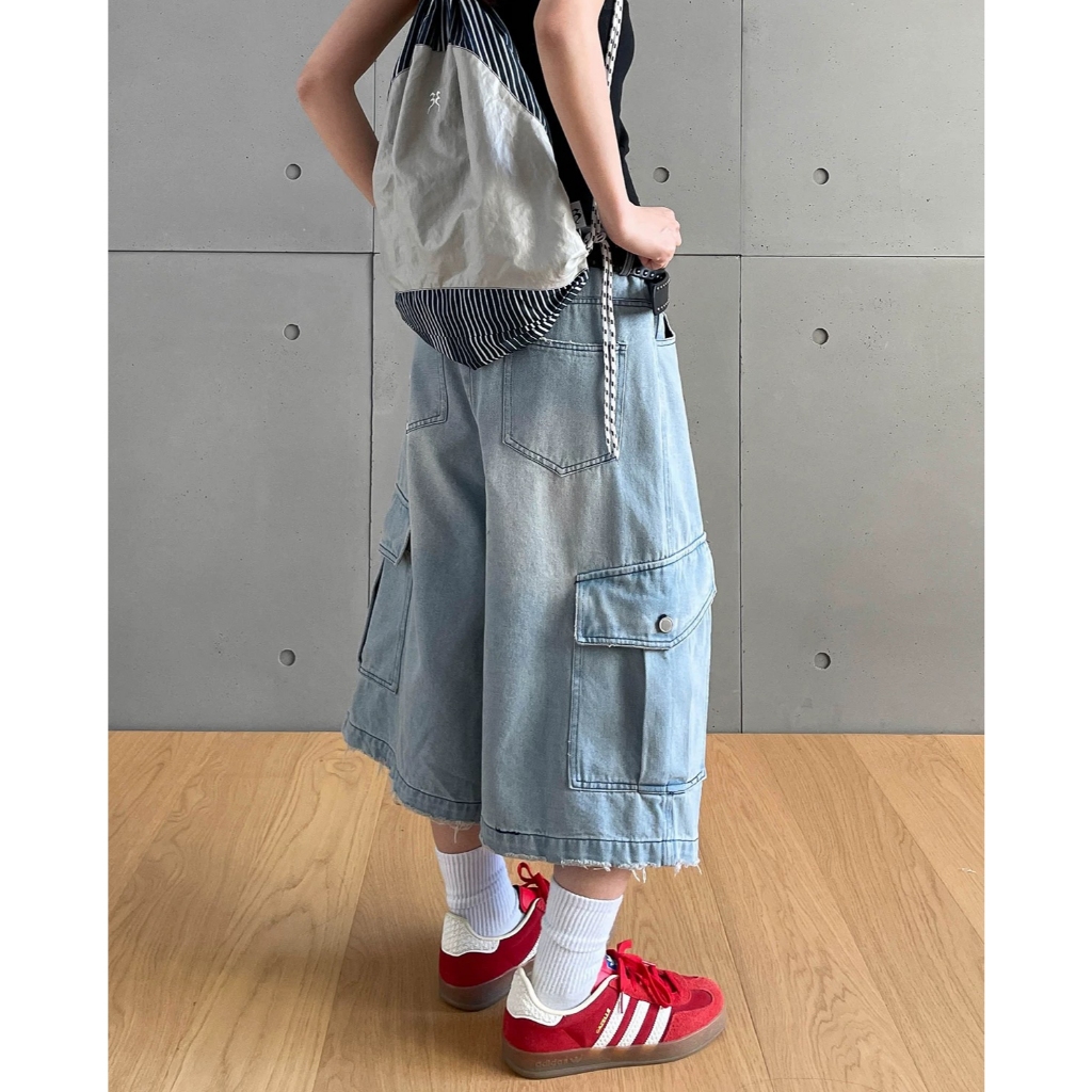 【K-2】美式復古 立體壓褶 毛邊 大口袋 牛仔七分褲 工裝短褲 七分褲 牛仔短褲 短褲 工作褲 Y2K【J7625】M|L|XL|XXLK-2 Fashionboy