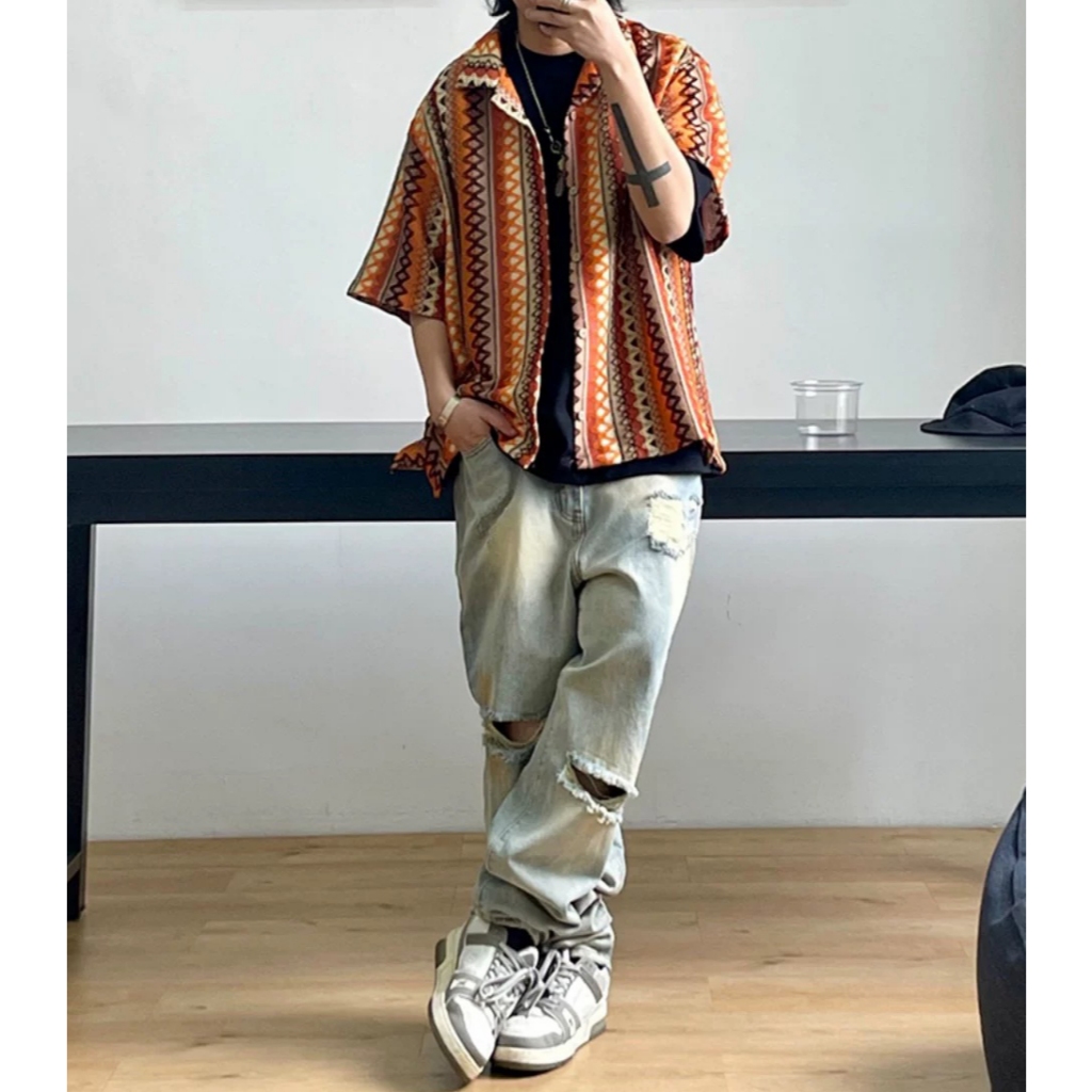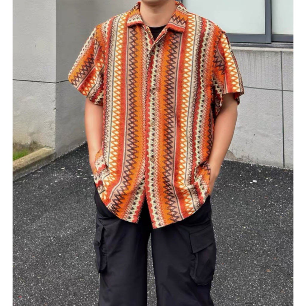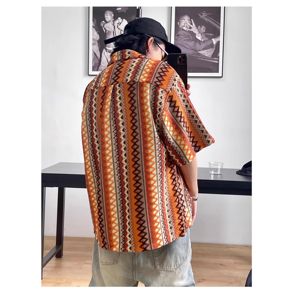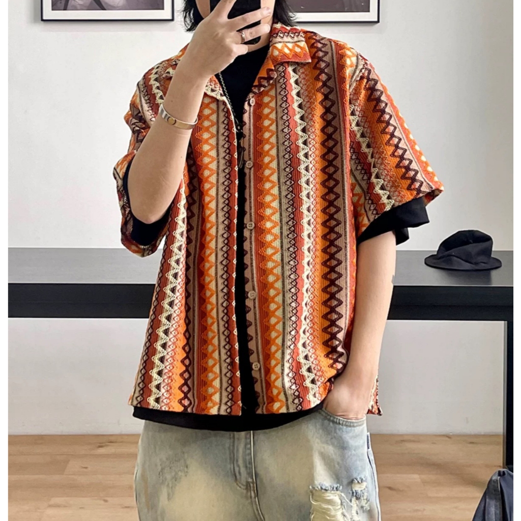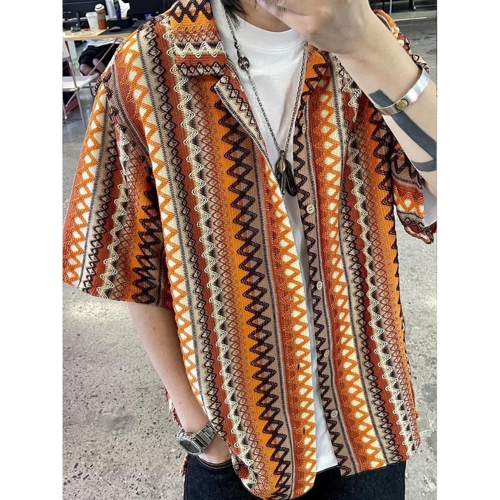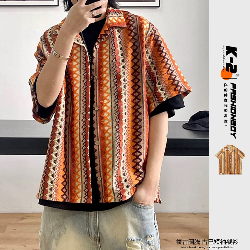 【K-2】VINTAGE 復古編織 圖騰 短袖襯衫 復古襯衫 民族風 襯衫 Y2K襯衫 K2 花襯衫【JA242】M|L|XL|XXLShirtsK-2 Fashionboy